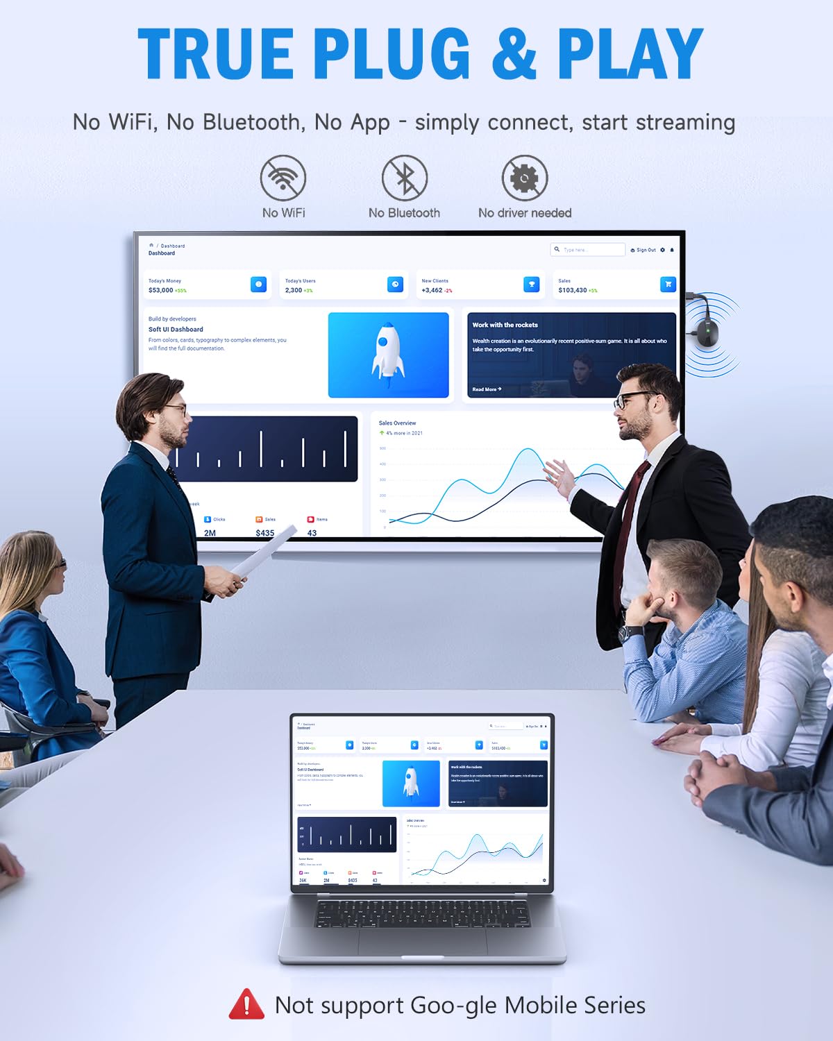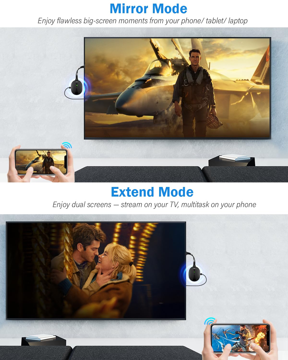 - 【Stunning 4K HD Quality】Enjoy crisp, vivid visuals with 4K wireless casting from your laptop, tablet, smartphone, or PC to your HDTV, projector, or monitor — wirelessly or via USB-C. Support for extended mode lets you cast to the big screen while using your device for other tasks.