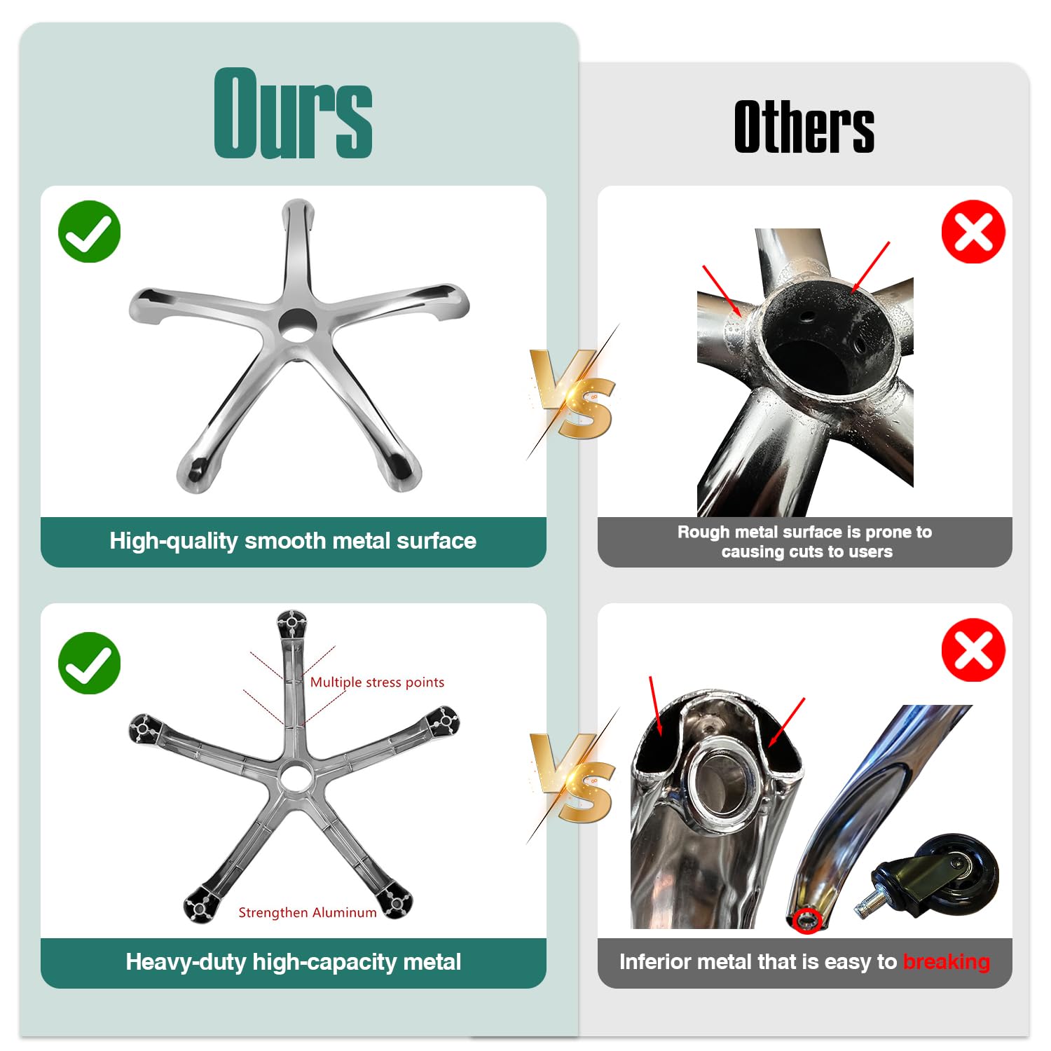 - Heavy-duty and high-quality metal base: Unlike the low-quality metal with rough surfaces that are prone to damage, our high quality aluminum base has a smooth surface that will not scratch the skin and provides reliable stability. Weight capacity: 450 lbs.