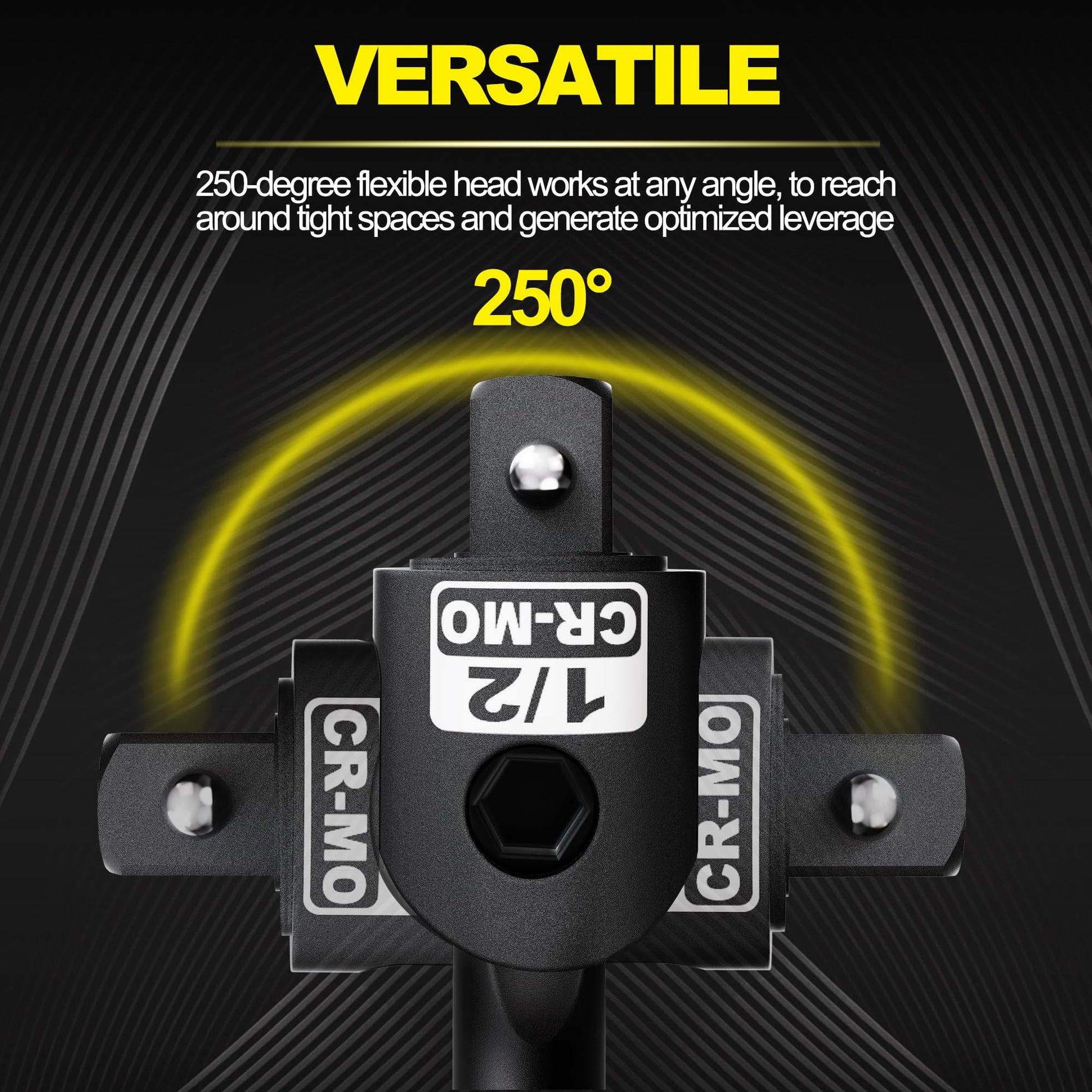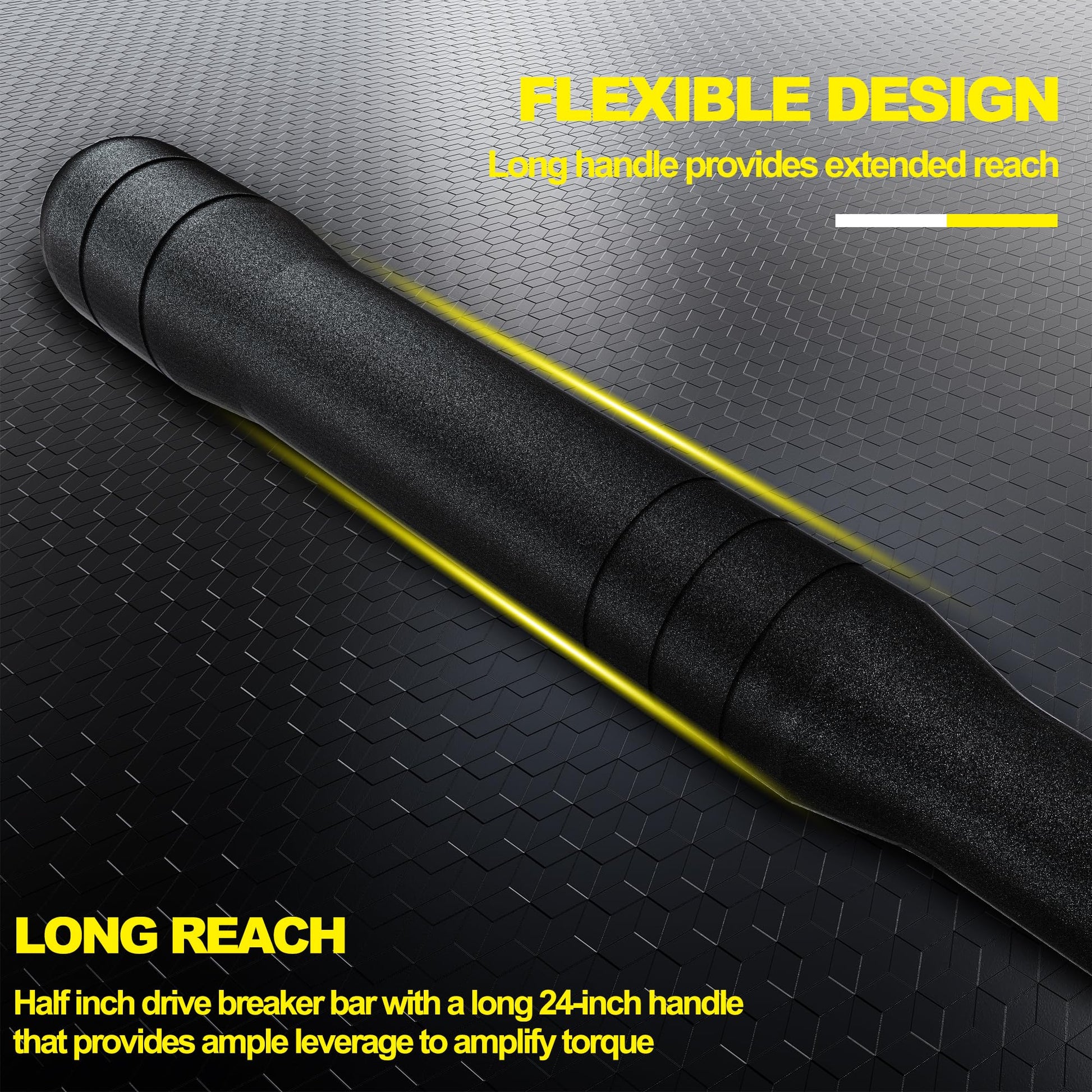 Aiourx 1/2" Drive 25-Inch Breaker Bar, Heavy Duty Extension Breaker Bar with 250° Rotating Head, Laser Etched Marking, Auto and Industrial Use, Conquer Stubborn Fasteners and Nuts