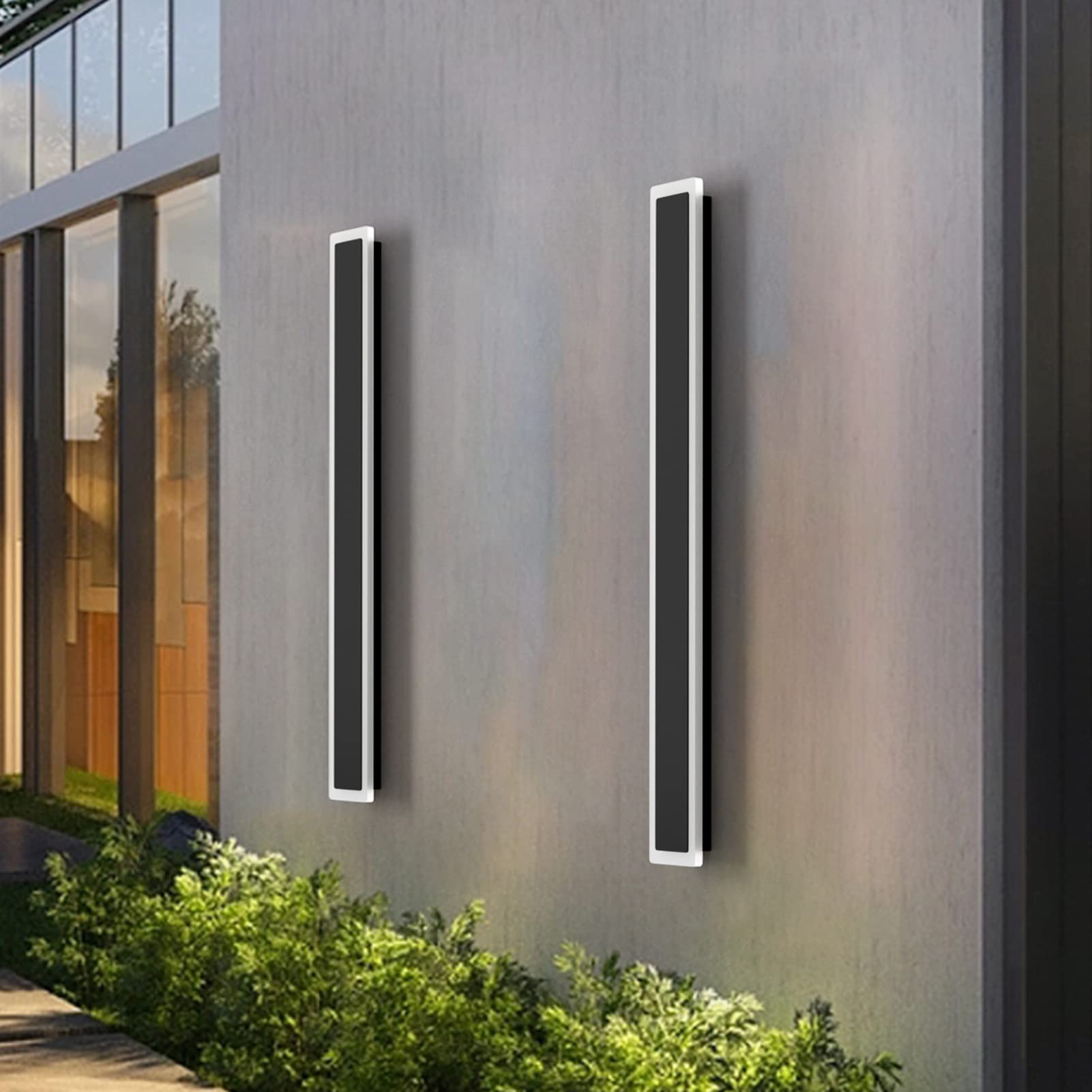 Aipsun 31.5inch Long Strip Modern Outdoor Wall Light Fixture, Black Wall Mount Lighting Sconce Long LED Linear Wall Lamp Exterior Lights Wall Sconce 3000K for House Living Room Corridor(2 Pack)