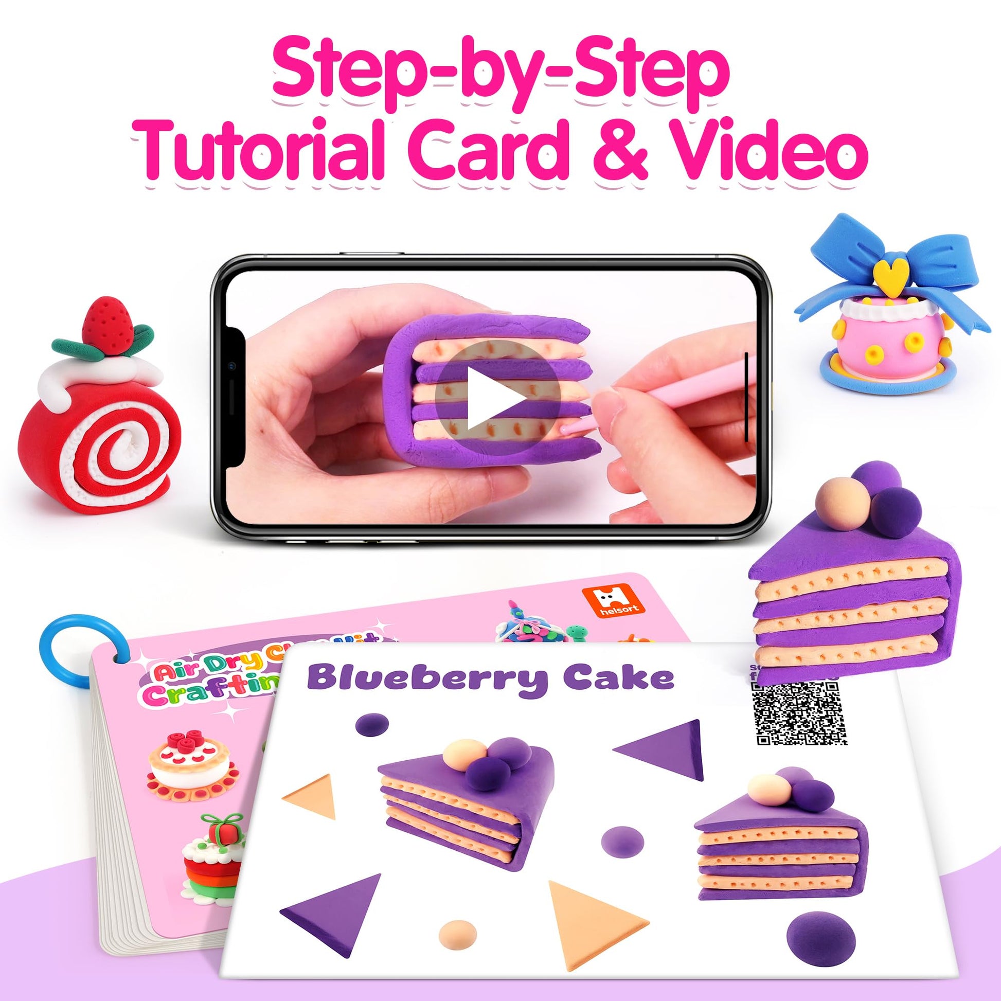 - Easy Step-by-Step Learning: Our craft clay kit comes with detailed tutorial cards and professional video instructions. Helps kids sculpt the same adorable cakes shown on the box—or create their own unique desserts. Ideal for beginners and kids just starting their creative journey.