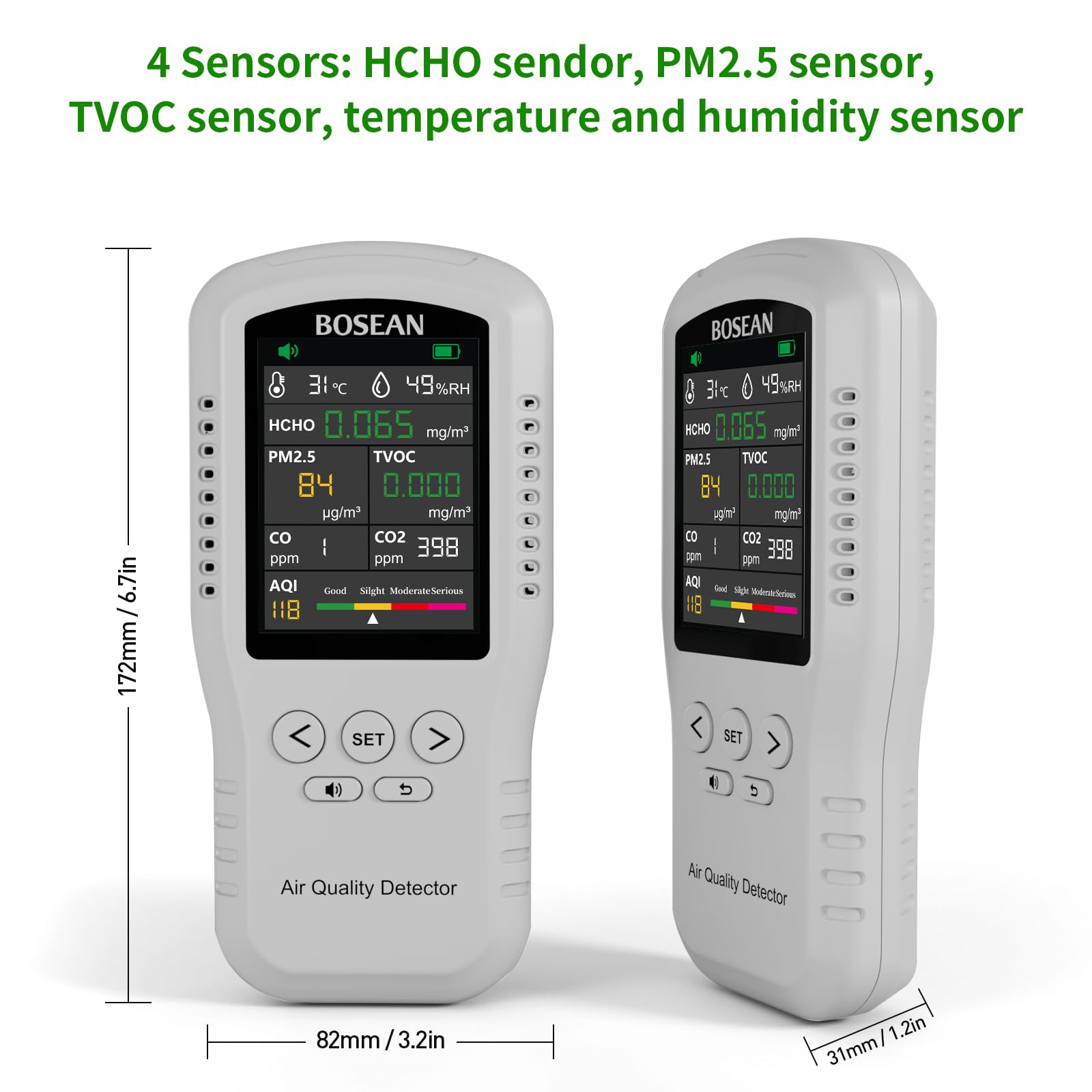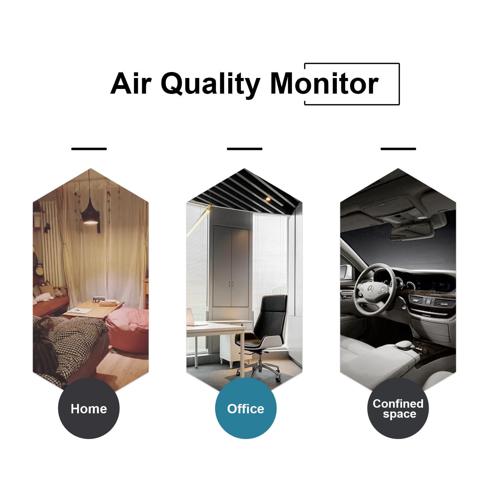 - 【EMBEDDING REAL SENSORS】Semiconductor sensors, electrochemical sensors, and temperature and humidity sensors, NDIR sensors, efficiently, stably, and sensitively detect gas concentrations, and identify the health of the air environment;A total of four sensors were used, namely temperature and humidity sensors, formaldehyde sensors, PM2.5 particulate matter sensors, and TVOC sensors. CO and CO2 are calculated values based on the values of the TVOC sensor.