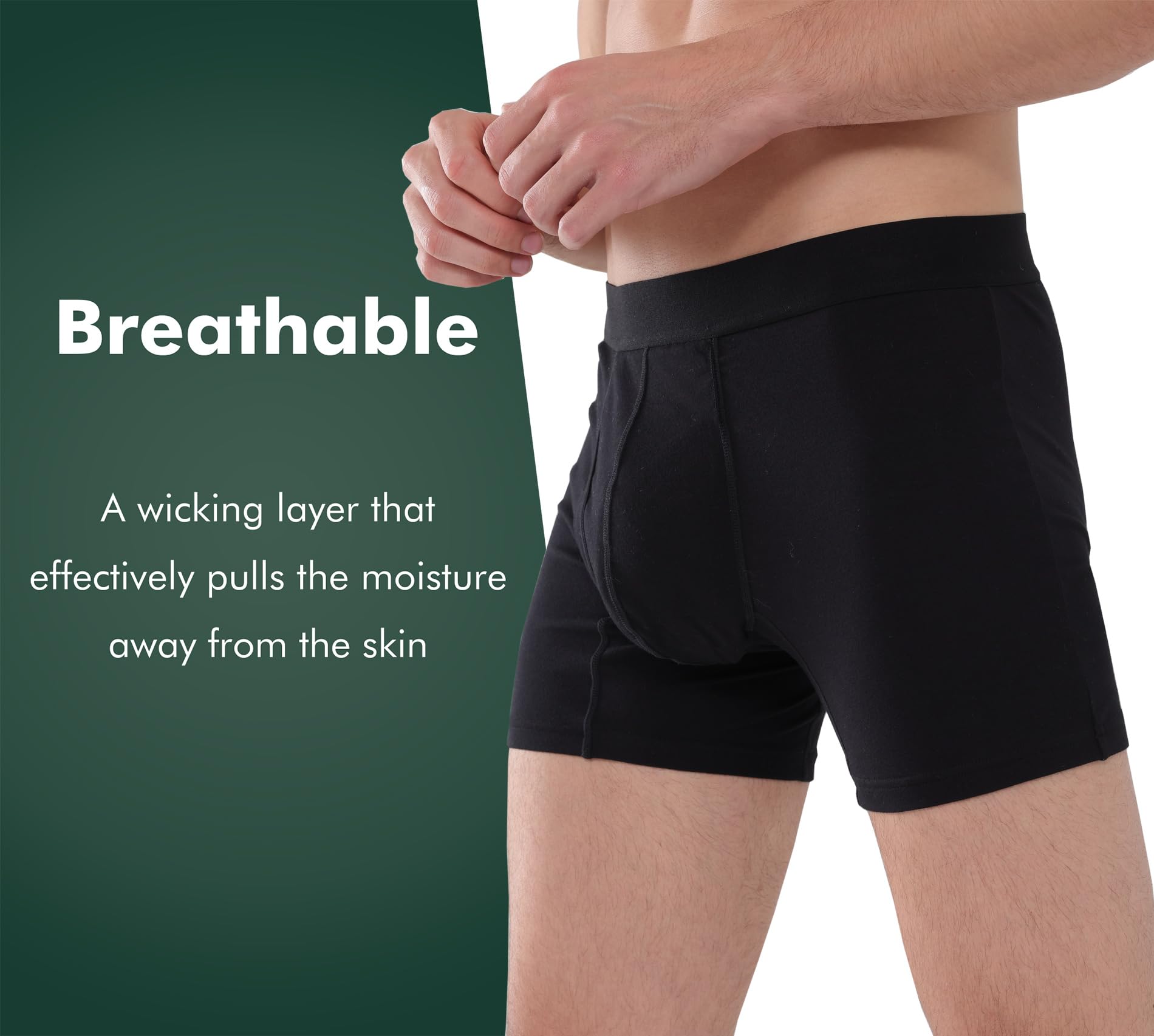 - COTTON LONG LEG COVERAGE & PERFORMANCE: 95% Cotton 5% Spandex. 6" inseam design offers a sporty look with more coverage than trunks underwear. AIRCUTE Leak Proof Underwear looks and feels like your everyday regular underwear. Maximum 60 ML (2.1 OZ) absorbency with odor resistance functions make you regain confidence and comfort everywhere
