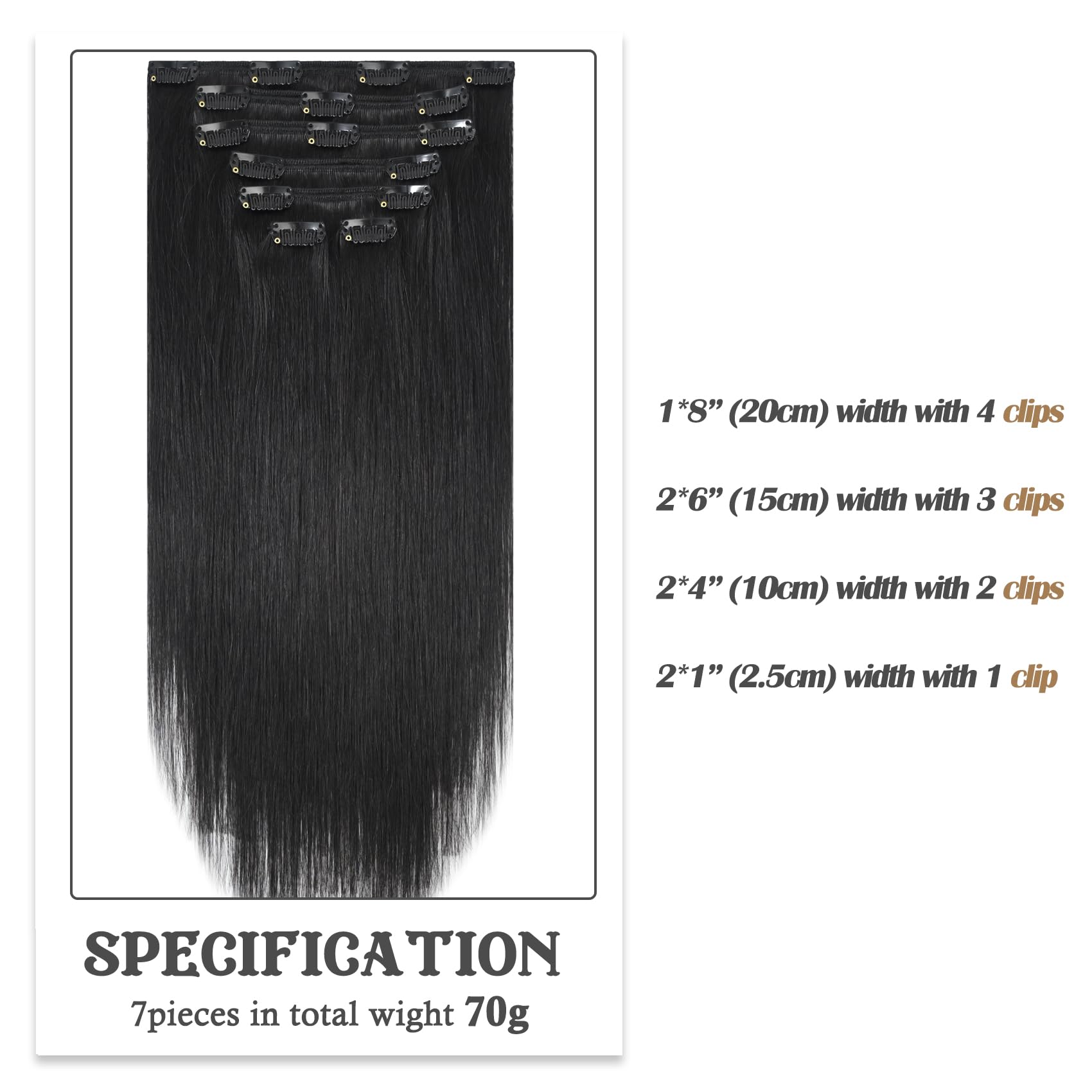 Aison Natural Black Clip in Hair Extensions Real Human Hair 18 Inch 70G/7Pcs Soft Silky Straight 16clips Clip in Human Hair Extensions for Women(18 Inch #1B)
