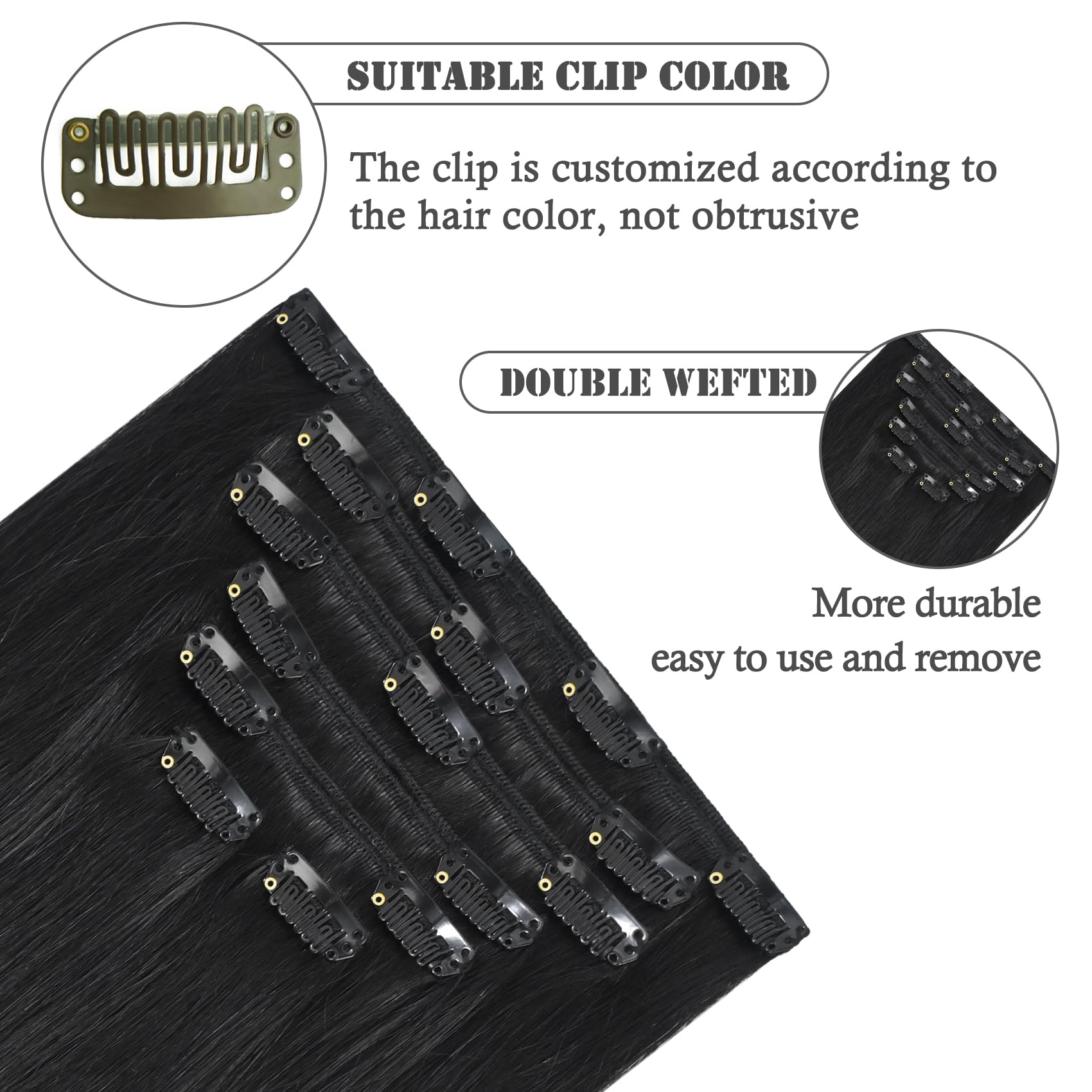 - 2. 【Good Quality】:Clip in human hair extensions with 100% remy human hair.There is no shedding and no tangle. The new double weft technology to prevent hair loss,Grade 7A 100% real human hair clip in extensions,can withstand 350 degrees Fahrenheit curl,straighten and styled.