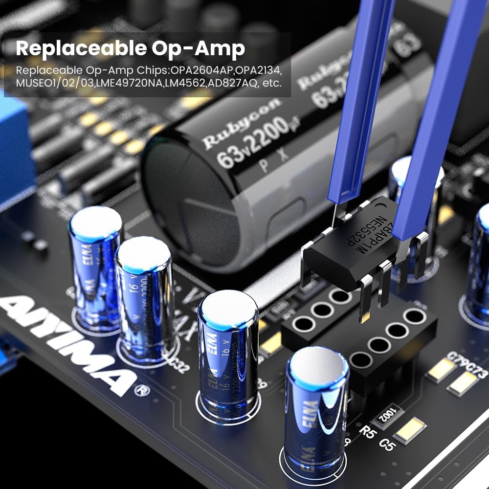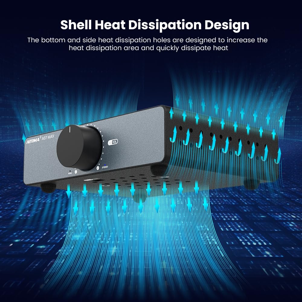 - 【Excellent Audio components Amplifier】AIYIMA A07 MAX Mini Hifi Amplifier adopts TI TPA3255 high-performance & low-distortion Class D amplifier chip and NE5532 Op-amp chip enabling true premium sound qality. And the use of high-quality Audio components:Japanese capacitors,ELNA and German WIMA capacitors, as well as IT Power management chip, to create excellent audio quality