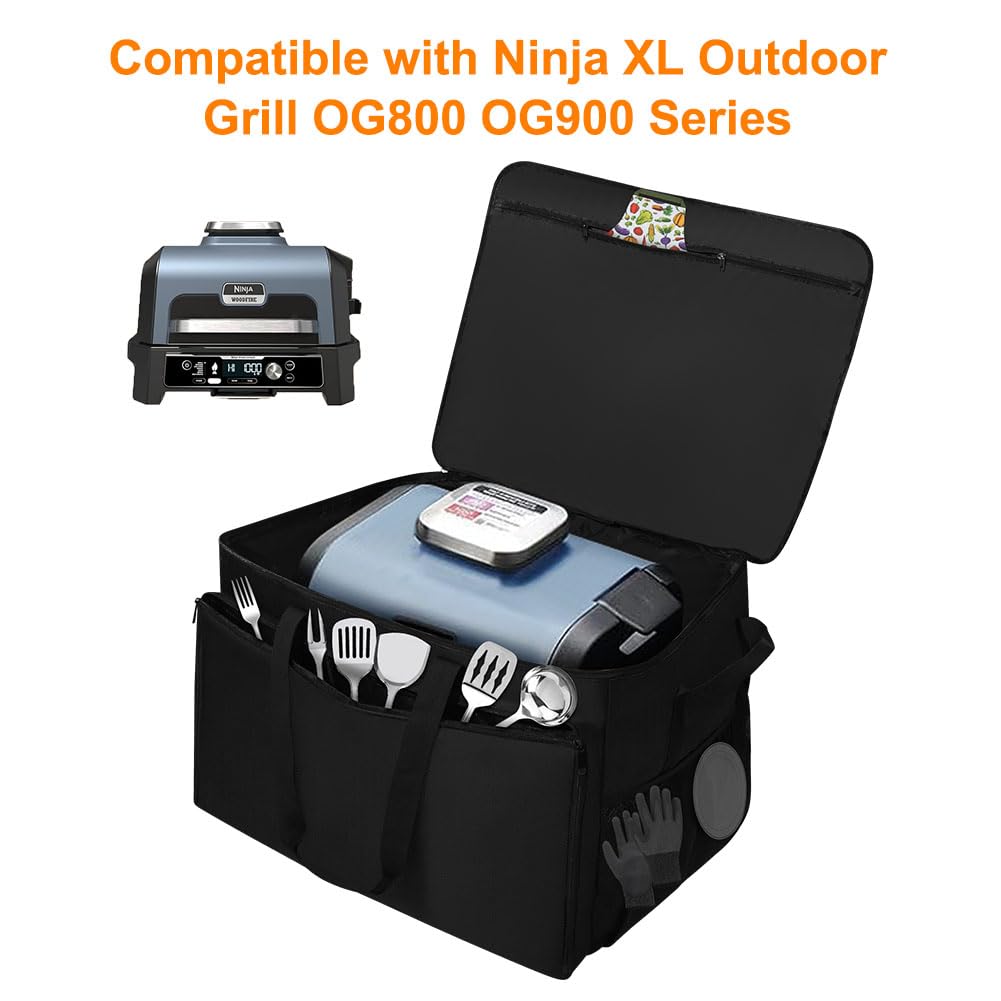 - Custom Designed: This barbecue grill carrying bag measured 25.5"Lx21.5"Wx17.5"H is compatible with Ninja* OG800 & OG900 Series Woodfire Pro XL Outdoor Grill, not compatible with Ninja* OG700 Series Grill. It also fits other grills within the dimensions of 25.5x21.5x17.5inchs. (Please measure your grill before purchasing.)