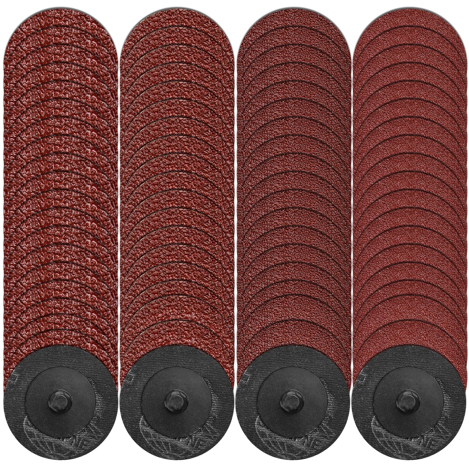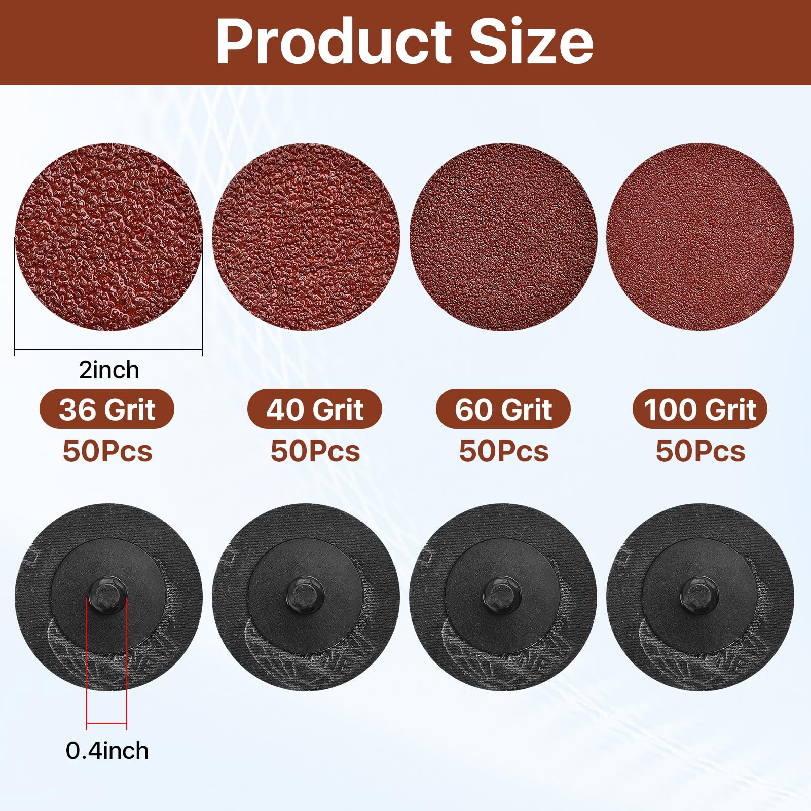 Akamino 200 Pcs 2 Inch Sanding Discs,36/40/60/100 Grit Mix Roll Lock Discs Set,Aluminum Oxide Coated Die Grinder Surface Conditioning Discs for Surface Prep Polish Burr Rust Paint Remova