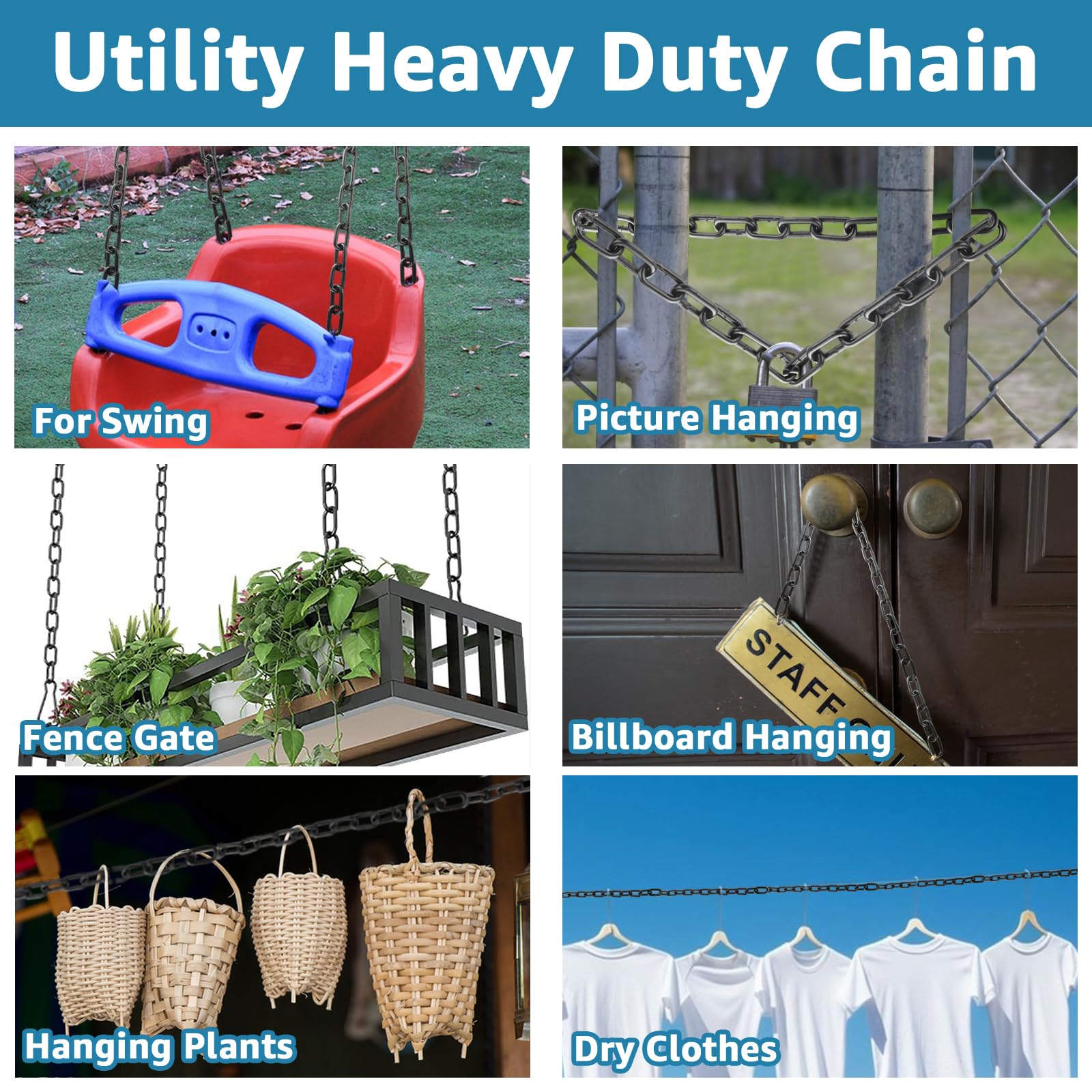 - 【Wide Application】 Our 3/16" Heavy Duty Chain is ideal for hammock chair, swing, fence gate, punching, boxing and heavy bag, etc. Perfect for porch, backyard, balcony, gym and other indoor & outdoor environments.