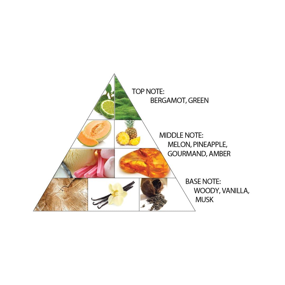 - Middle Notes: Juicy melon and pineapple blend with sweet gourmand tones and warm amber, making this a bold yet balanced women's and mens cologne.