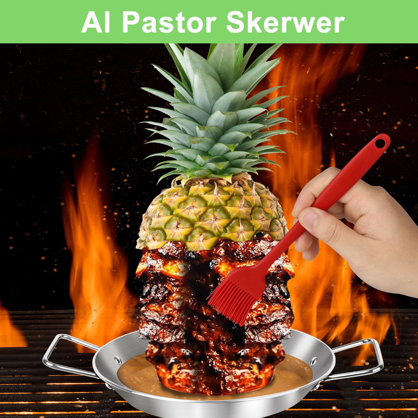 - Multiple Application: Practical for Making Tacos Al Pastor, shawarma, and Gyros at Home. With our vertical skewer, you could just use your oven or your regular Grill to make restaurant-style Gyros, Al Pastor, Shawarma, Doner, Kebabs, Whole Chicken, Fish, even Brazilian Churrascaria dishes right on your own grill or oven. No Rotisserie is needed to make the most flavorful meat you've ever tasted