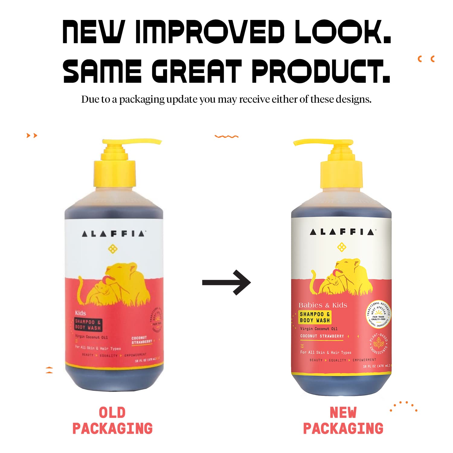 Alaffia Babies and Kids Shampoo and Body Wash, Gentle and Calming Support for Soft Hair and Skin with Shea Butter, Neem, and Coconut Oil, Fair Trade, Coconut Strawberry, 2 Pack – 16 Fl Oz Ea