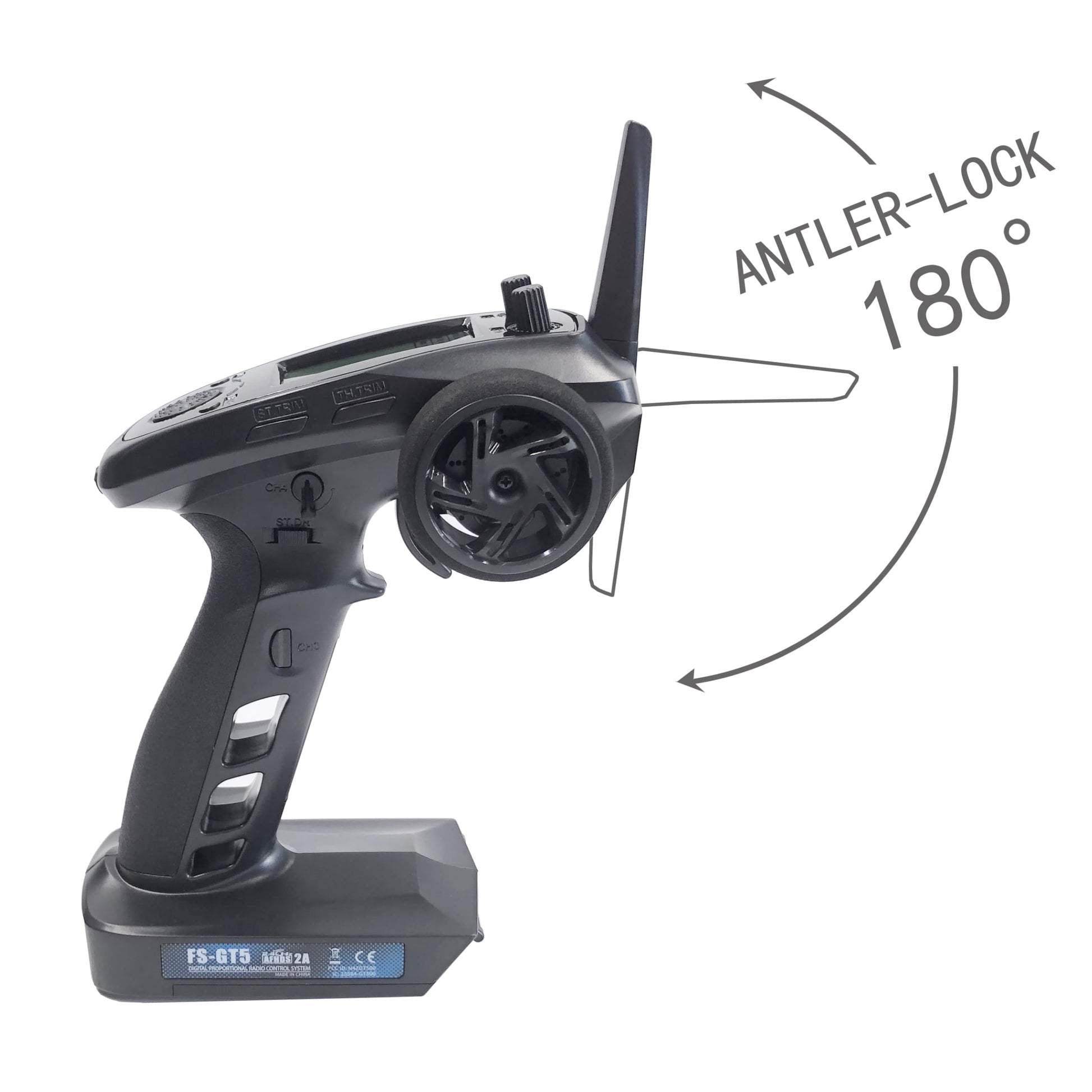 Details: The FS-GT5 is a 6-channel gun-style transmitter built for cars and boats.