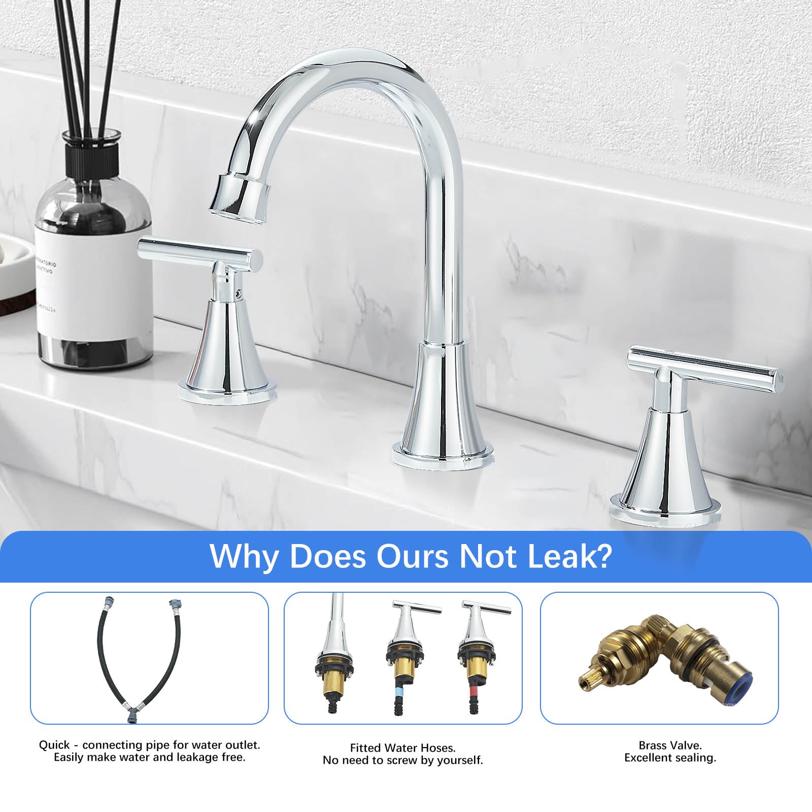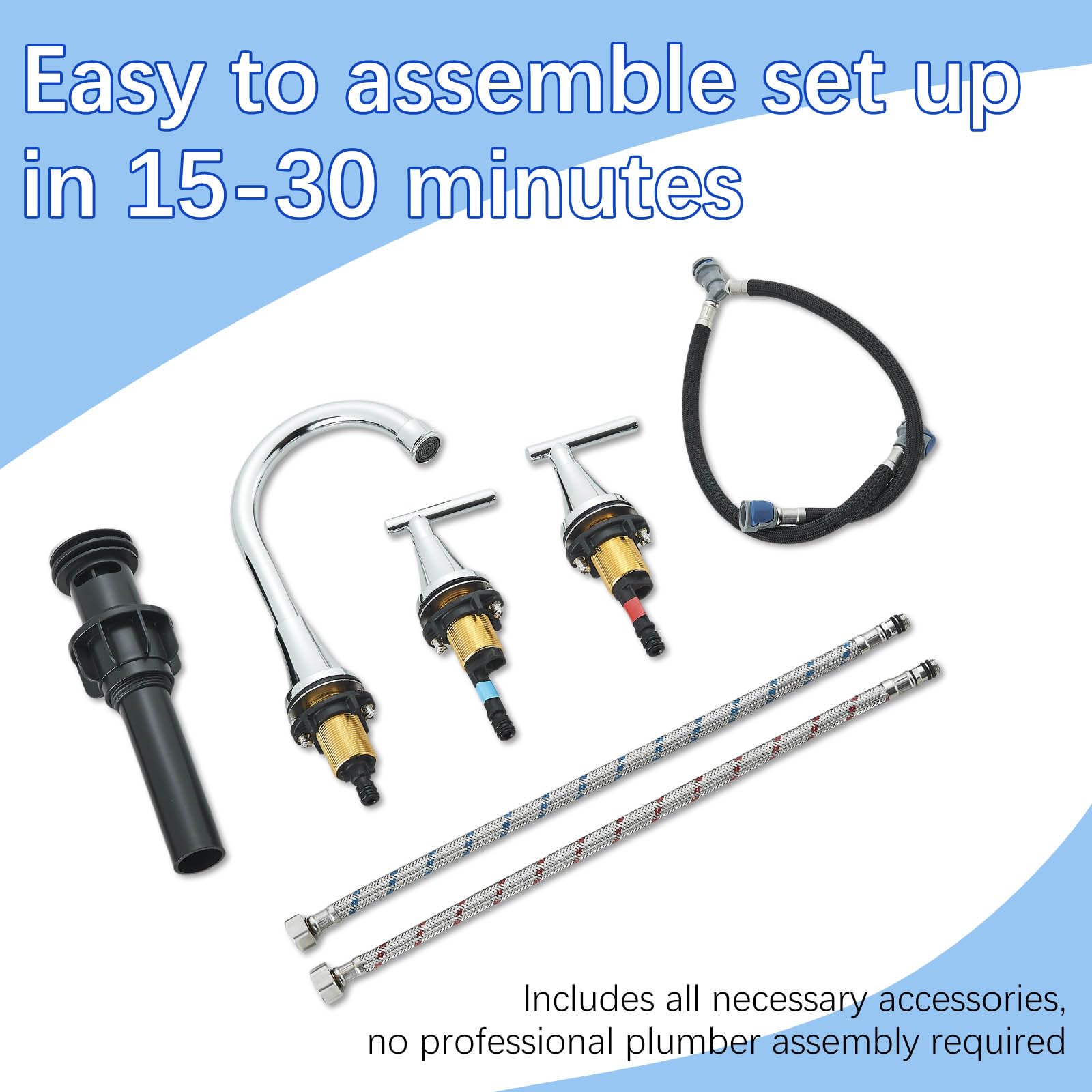 - 【EASY INSTALLATION】Say goodbye to complicated installations. This bathroom faucet features a user - friendly quick - connect design. The hoses audibly click when properly connected, ensuring a secure and leak - proof installation. It is compatible with 3 - hole widespread installations, and all the necessary components, such as a pop - up drain and supply lines, are included, allowing you to install it on your own in no time.