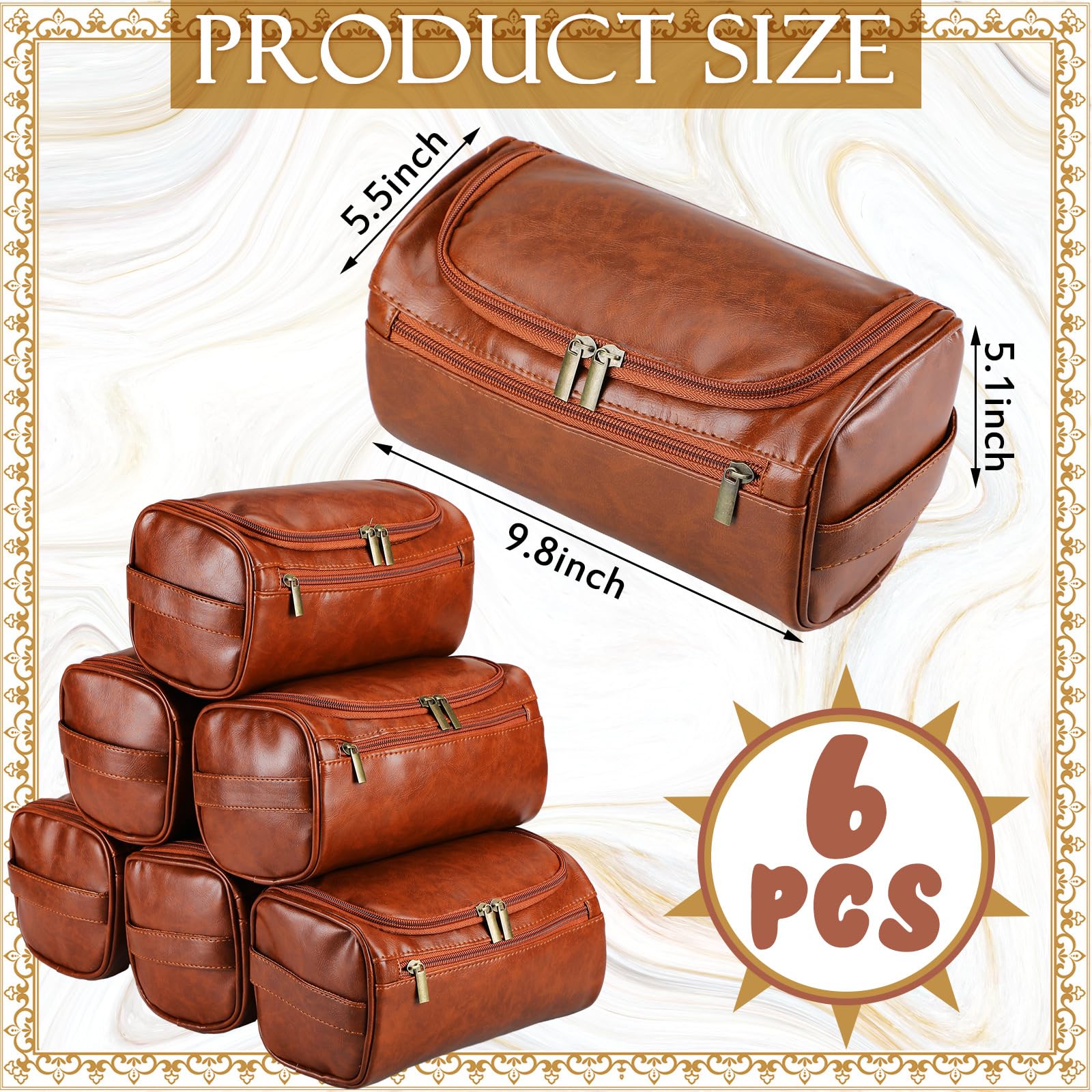 - Unisex Fashion Design: the pack contains 6 leather groomsmen toiletry bags, each with a size of 9.8 x 5.5 x 5.1 inches/ 25 x 14 x 13 cm, suitable for carrying around; The pack is large enough for you to share with your groomsmen or friends; The unisex design is trendy and suitable for both men and women
