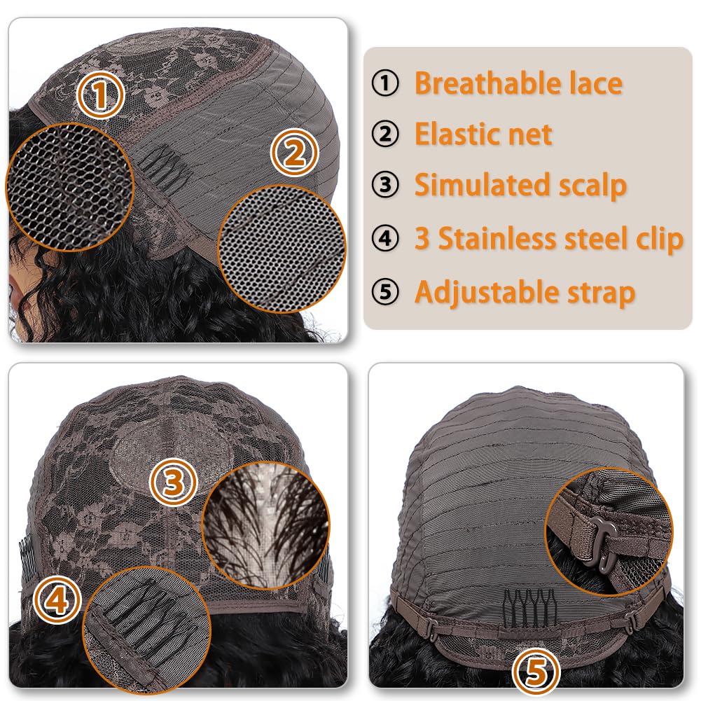 - Smart Design: 1. We have selected excellent breathable and soft wig cap, making it more comfortable for you to wear 2. In the wig cap there are three clips to better secure the wig, one on the forehead, two on both sides 3.There are two adjustable straps in the back, the head circumference can be adjusted 21-22.5 inches.