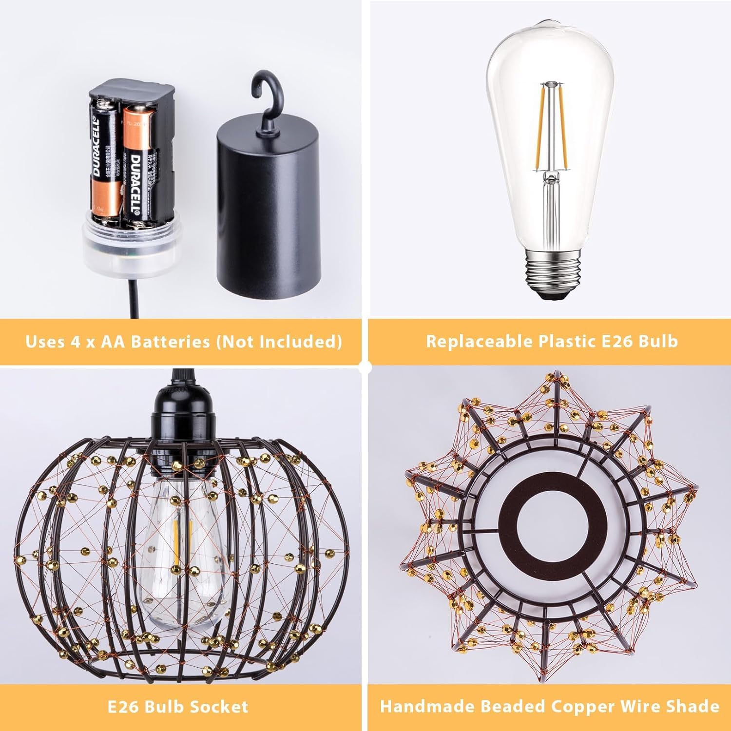 - Elegant Design: Crafted from hand-woven copper wire and adorned with golden beads, this battery powered pendant light creates a cozy vintage glow under the warm white light of an Edison bulb