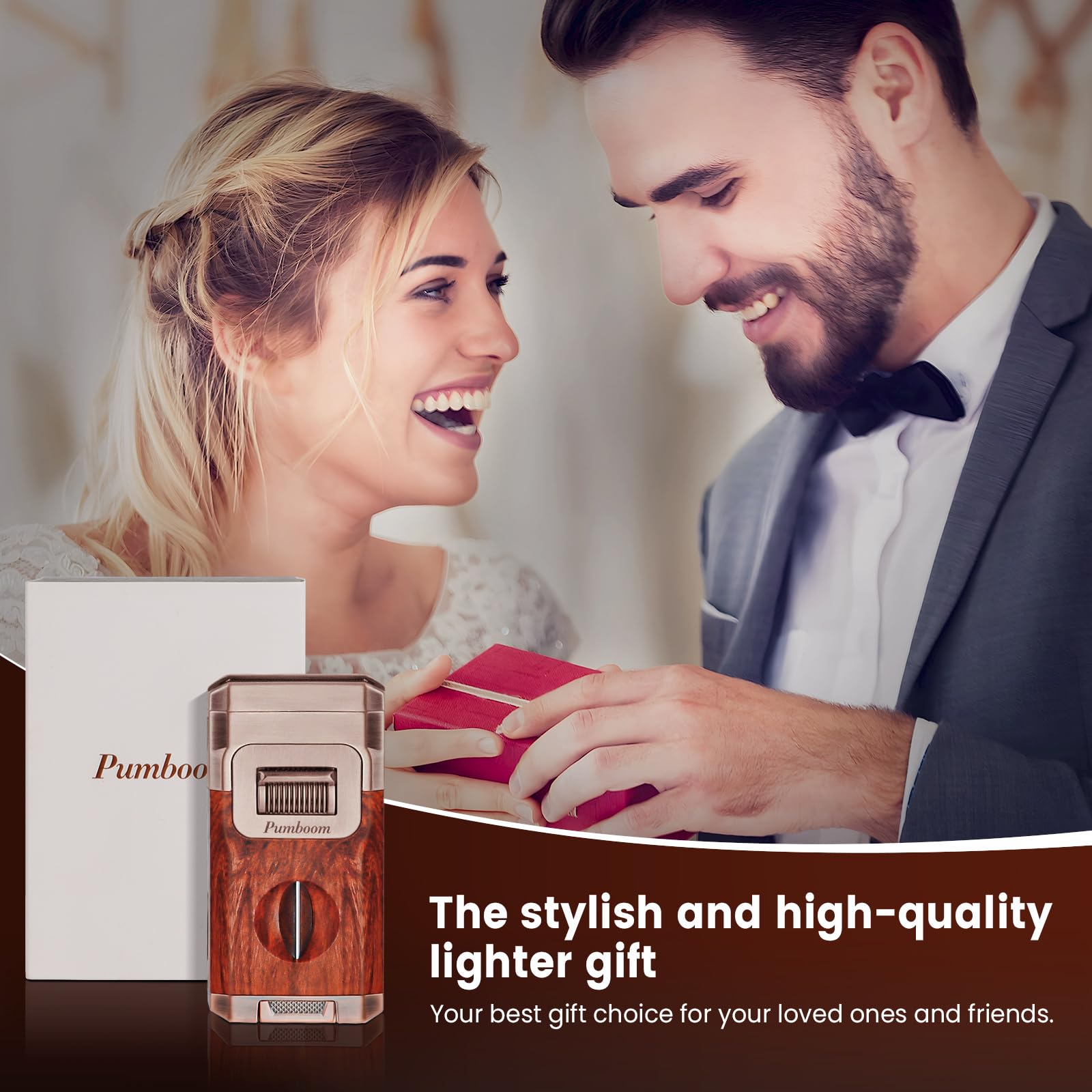 - 【Luxurious Multifunctional Lighter】 Our lighter makes cigar stand, windproof lighter, and V-shaped cigar cutter perfectly integrate. Its practical, and innovative multifunctional design can make your cigar journey easier and more enjoyable. Also, this cool lighter adopts a red bronze brushed metal body, supplemented by a wood grain style design, which combines three elements of vintage, elegance and nature. Perfect for showcasing your refined taste