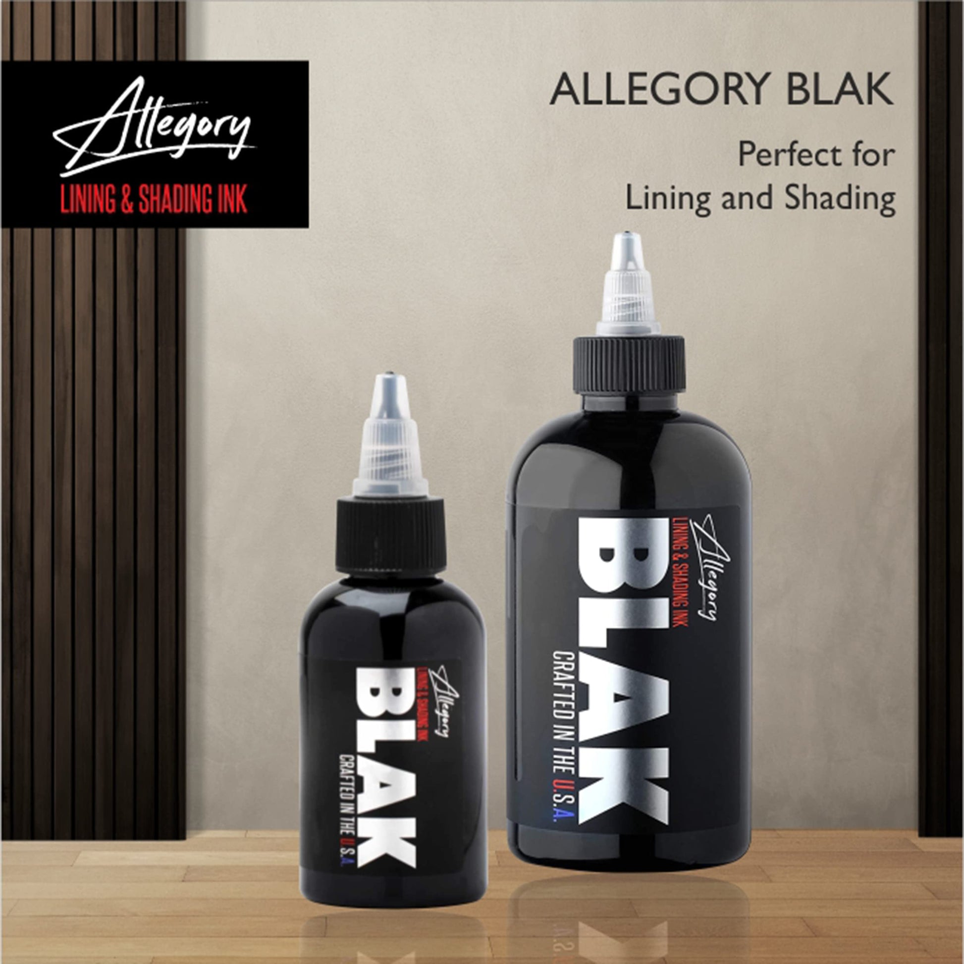 Details: Premium Tattoo Black Ink – Allegory BLAK is a smooth, consistent blend of liquid dispersed pigment. Many of the most popular tattoo artists around the globe uses Allegory BLAK Ink for precise lining and shading. Allegory BLAK is the stepping-stone to the future of tattooing.