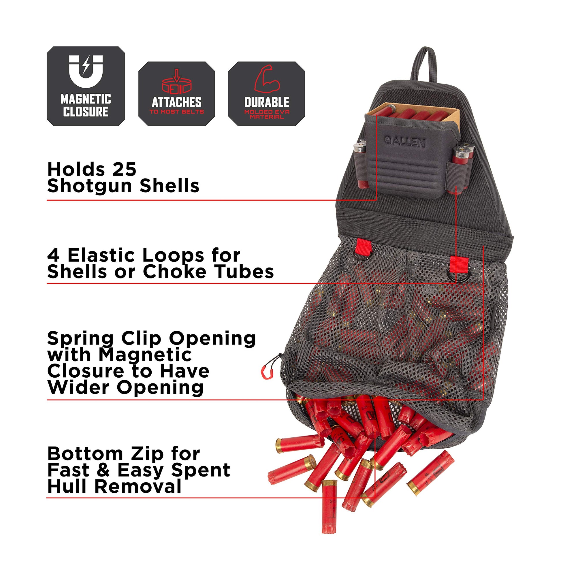 Allen Company® Competitor Over-Under Molded Hull Bag, Holds 125 Empty Hulls, Spring Clip Opening with Magnetic Closure, Gray