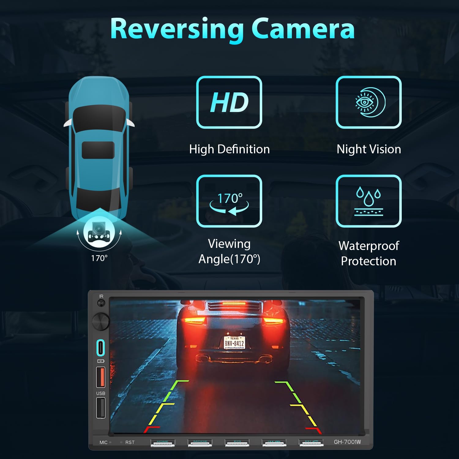 - Rear View Backup Camera: Night vision, 170° viewing angle waterproof backup camera, more safer and time-efficient experience! Simply shift into reverse and the system powers on the camera automatically, for optimal visibility no matter the weather conditions!