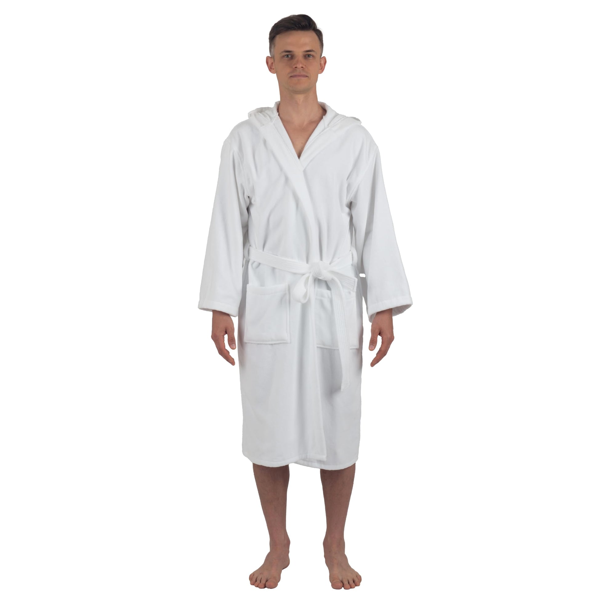 Alpine Swiss Dane Mens Hooded Bathrobe Pure Cotton Terry Cloth Long Robe for Men Super Absorbent Quick Drying Luxury Spa Robe WHT XL/2XL