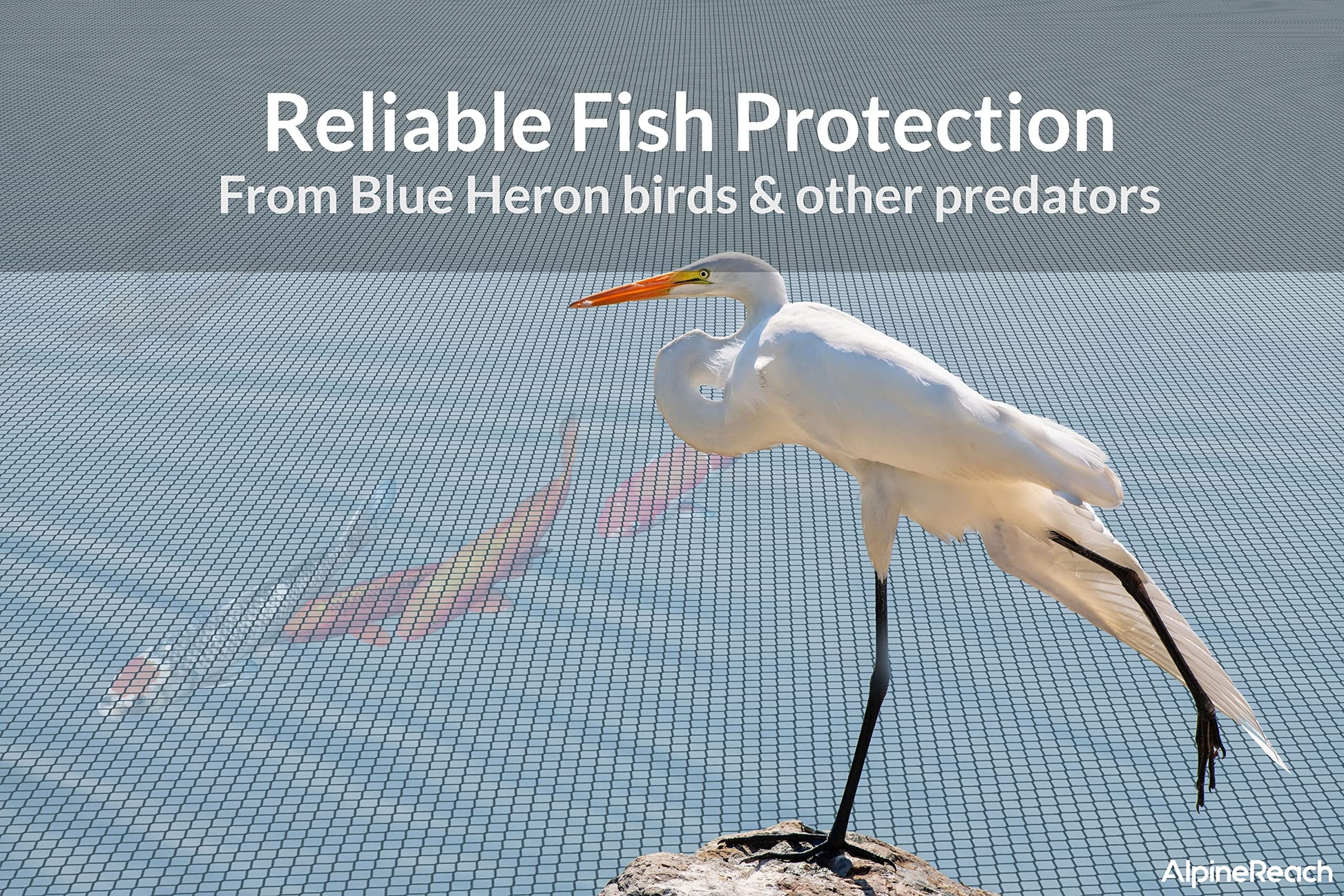 - RELIABLE FISH PROTECTION – Brilliantly designed to keep your fish safe against Blue Heron birds, cats and other predators. The protective net is knitted using premium resistant material and provides safeguarding from the Sun. The lightweight net floats above the waterline so your fish don’t get caught.