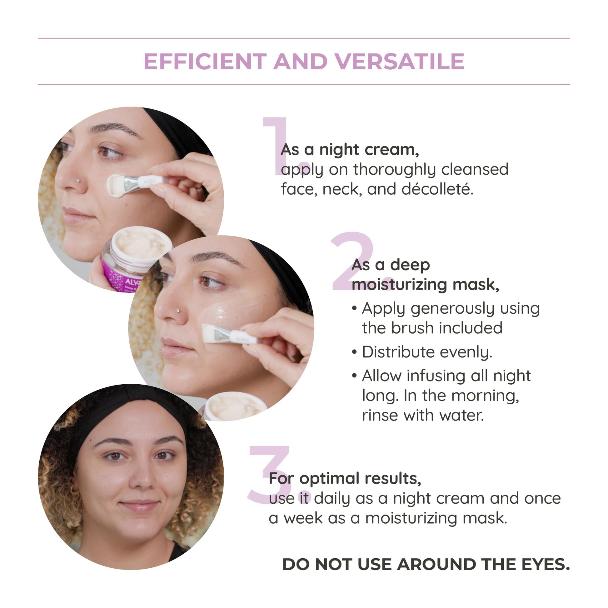- How To Use: Cleanse, then apply generously to face, neck, and décolletage as a night cream. Rinse in the morning. Use nightly and weekly as a mask. Avoid the eye area.