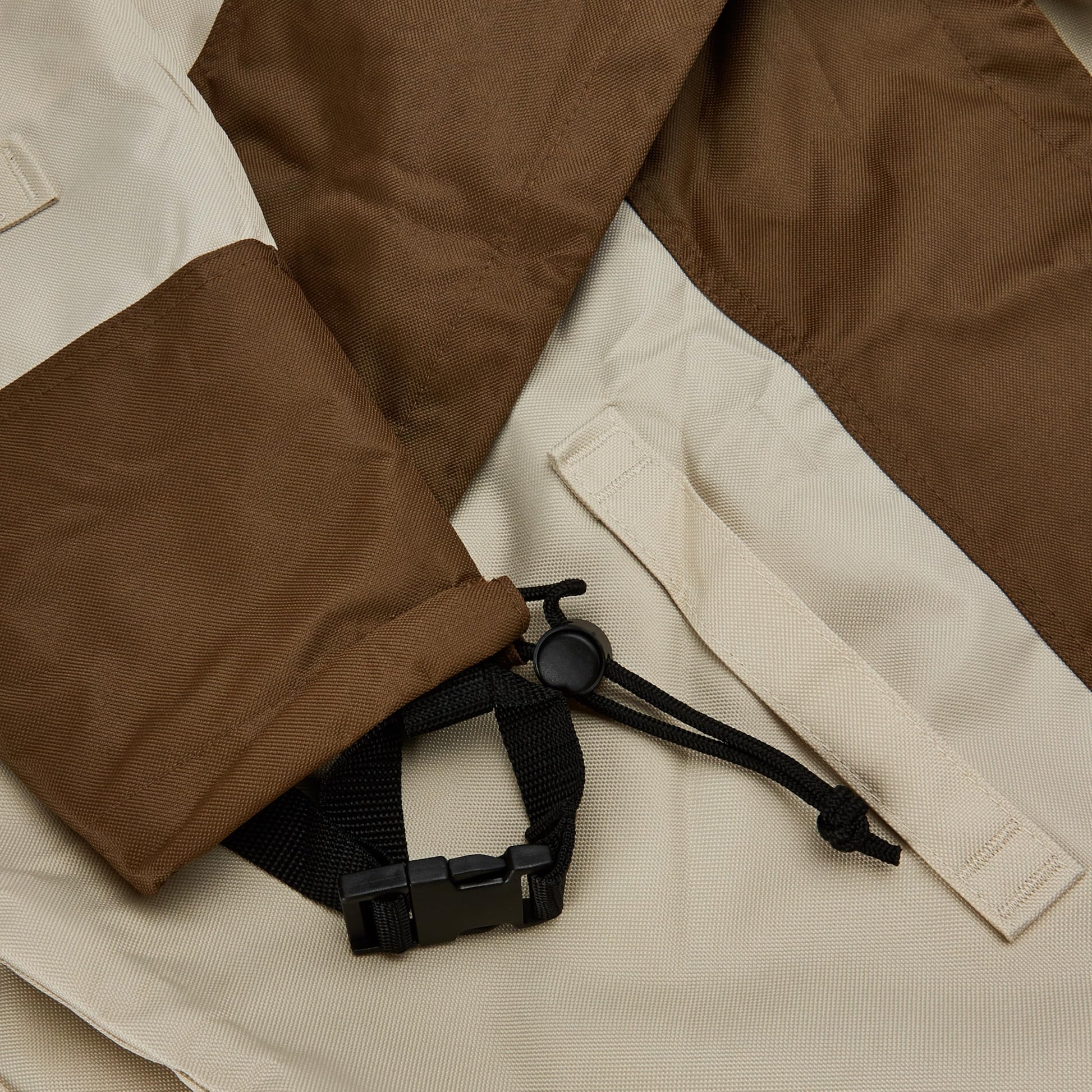 - 100% woven polyester fabric with waterproof undercoating to prevent rain from seeping through