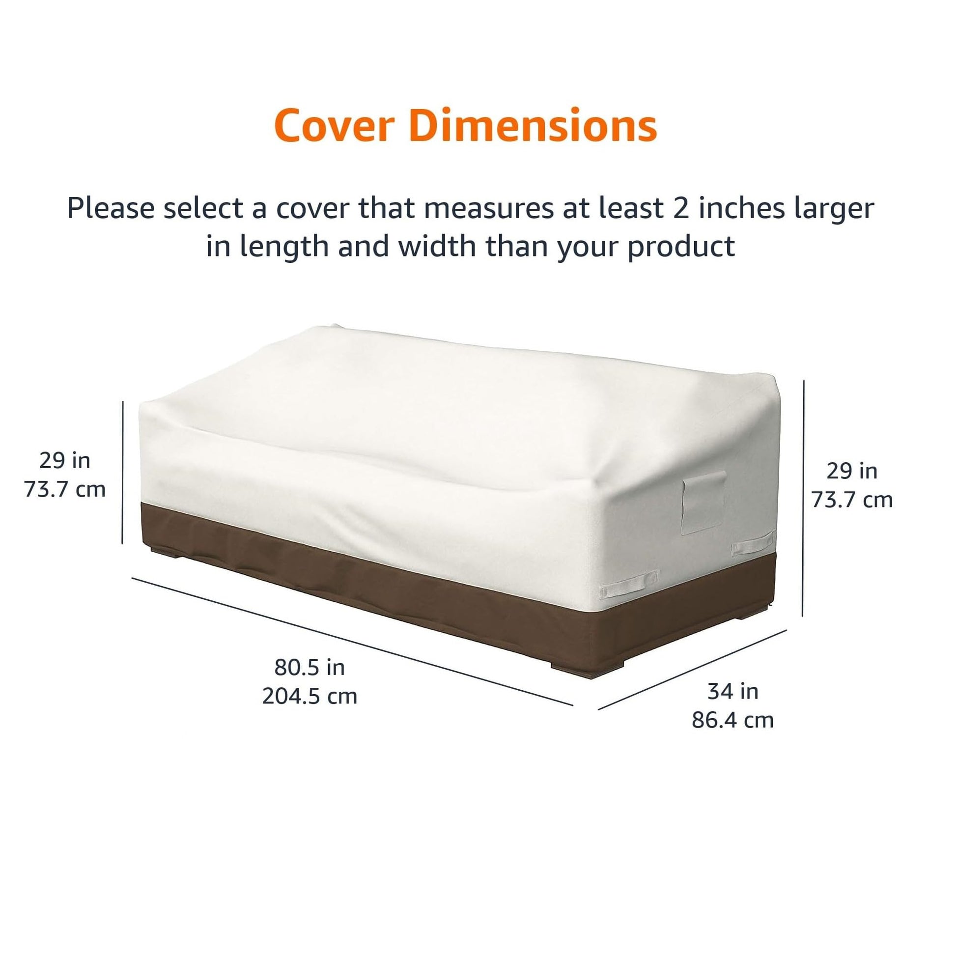 - Cover measures approximately 86.4x204.5x73.7 (LxWxH) cm