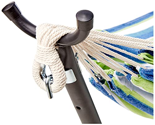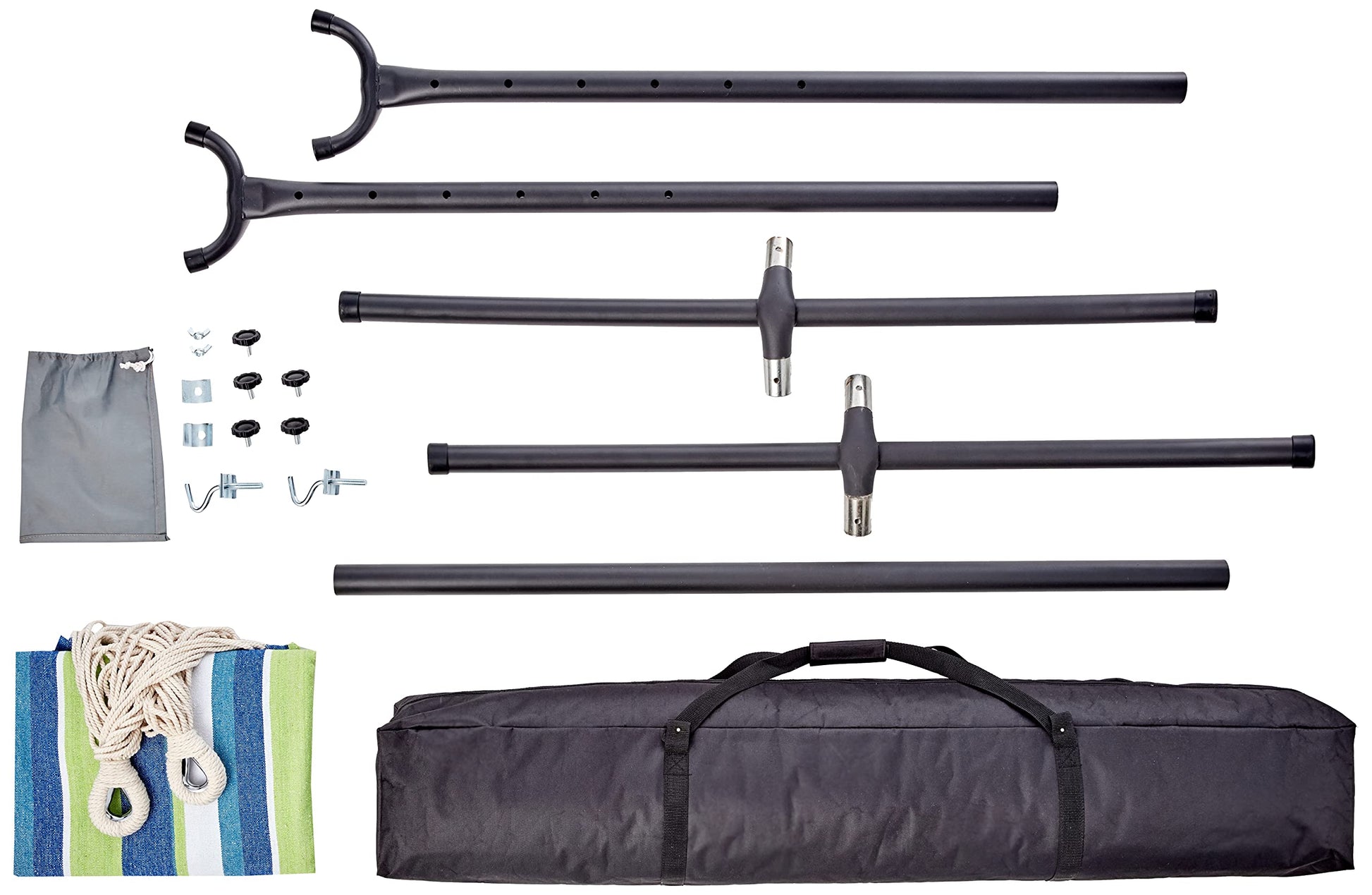 Amazon Basics Double Hammock with 9-Foot Space Saving Steel Stand and Carrying Case, Oasis Blue Stripe