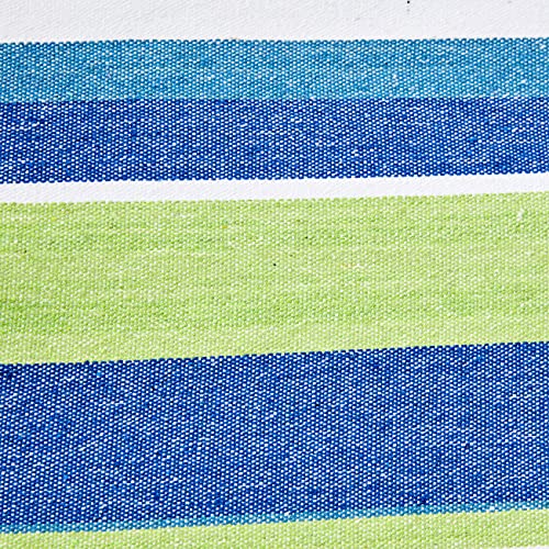 - Double hammock made of comfortable cotton & polyester with an Oasis Blue Stripe design, a steel stand, and a carrying case for the hammock