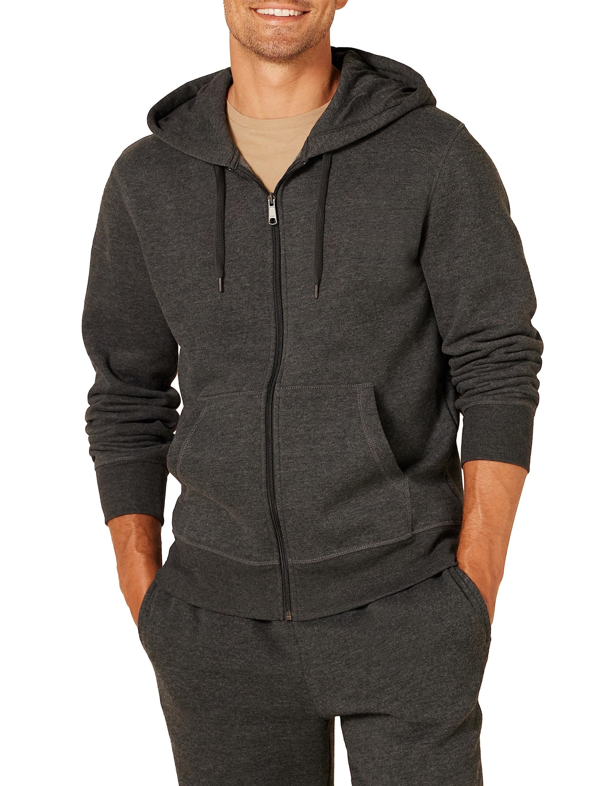 Amazon Essentials Men's Big & Tall Full-Zip Hooded Fleece Sweatshirt, Charcoal Heather, 3X Tall