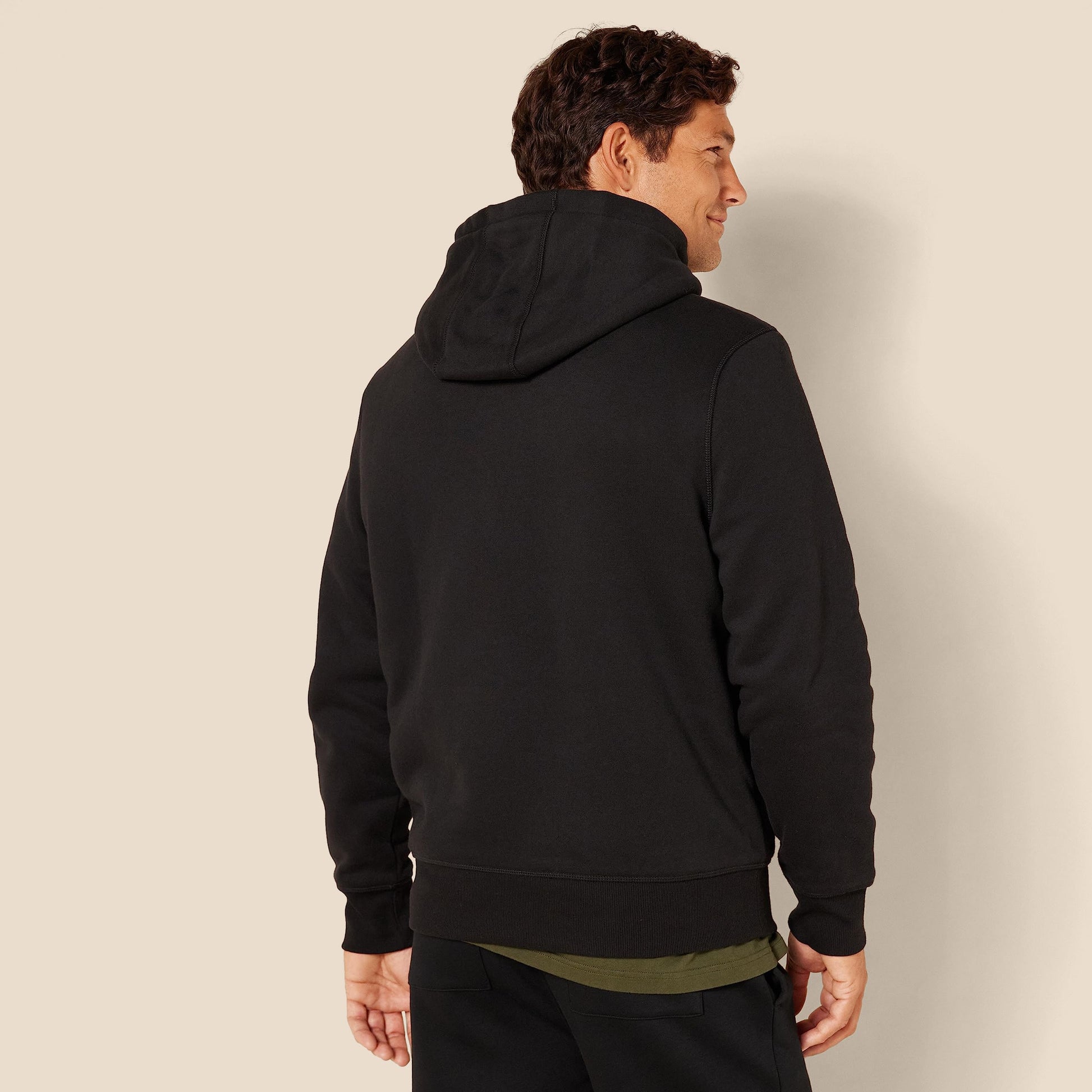 Amazon Essentials Men's Sherpa-Lined Pullover Hoodie Sweatshirt, Black, Small