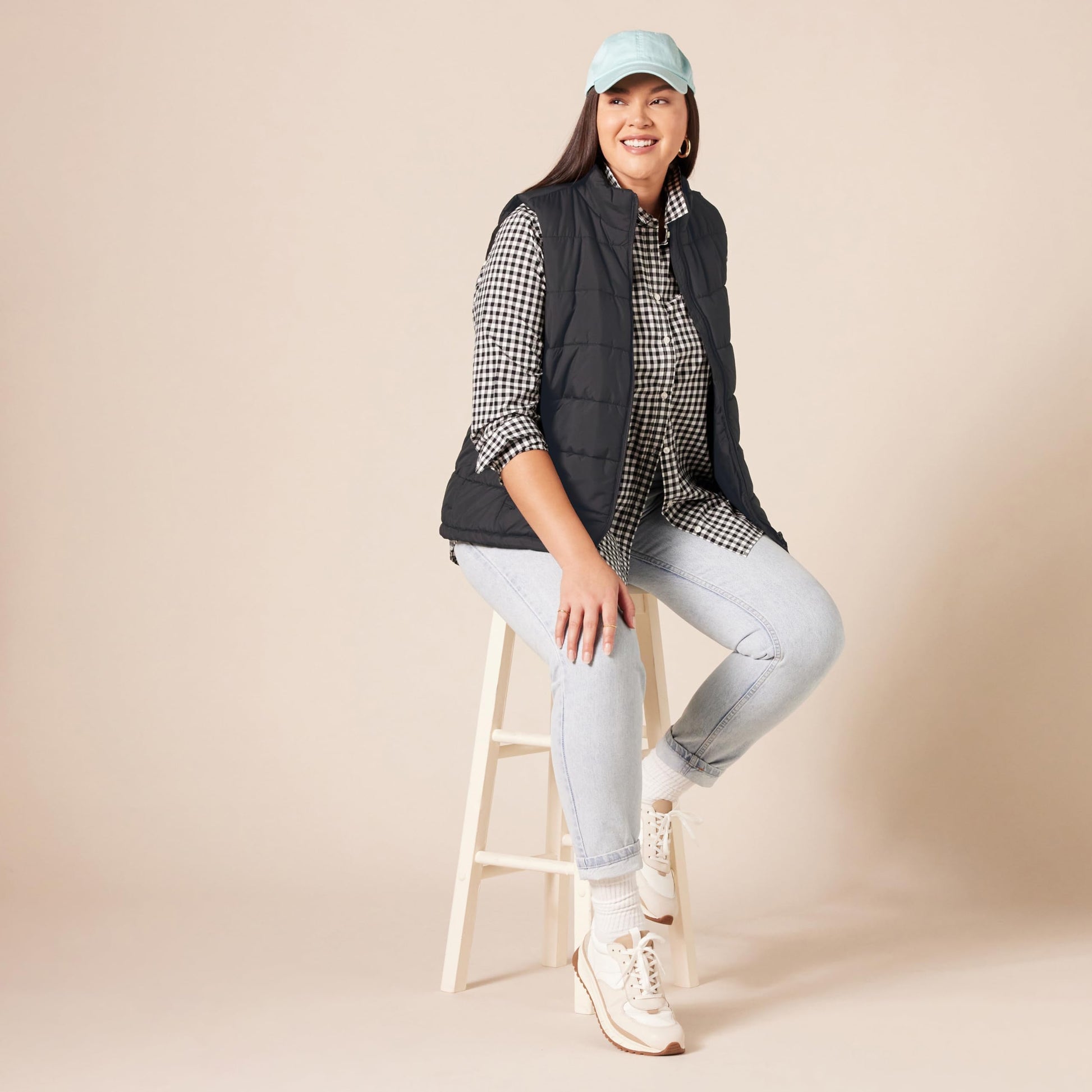 Amazon Essentials Women's Mid-Weight Puffer Vest, Black, Large