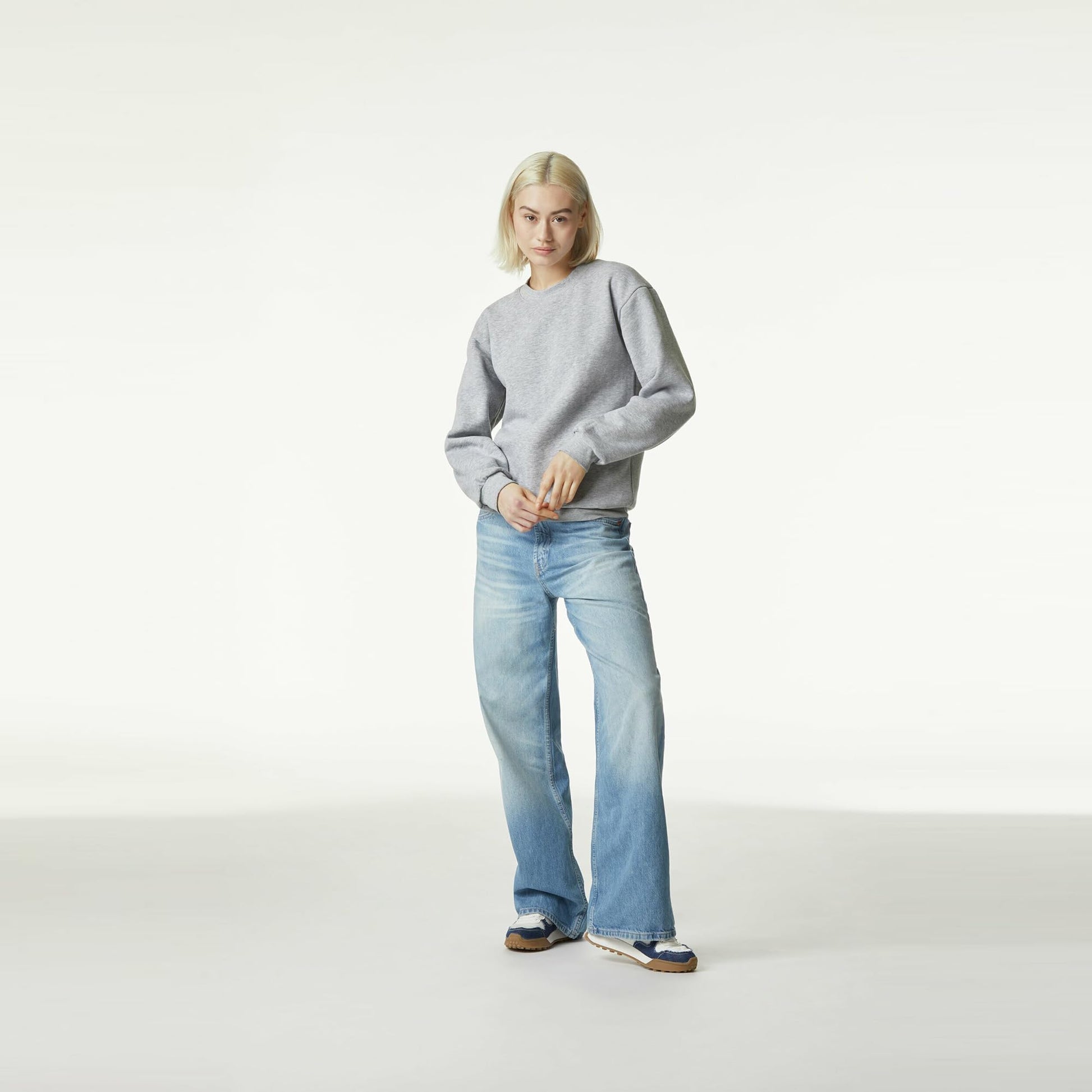 - Relaxed fit with side seamed body that allows for great comfort and all-day wearable style