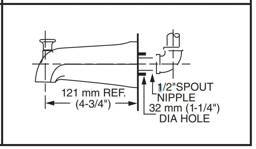 American Standard 8888026.002 Bath Slip-On Diverter Tub Spout, 4 in, Polished Chrome (for 1/2" Copper Water Tube)