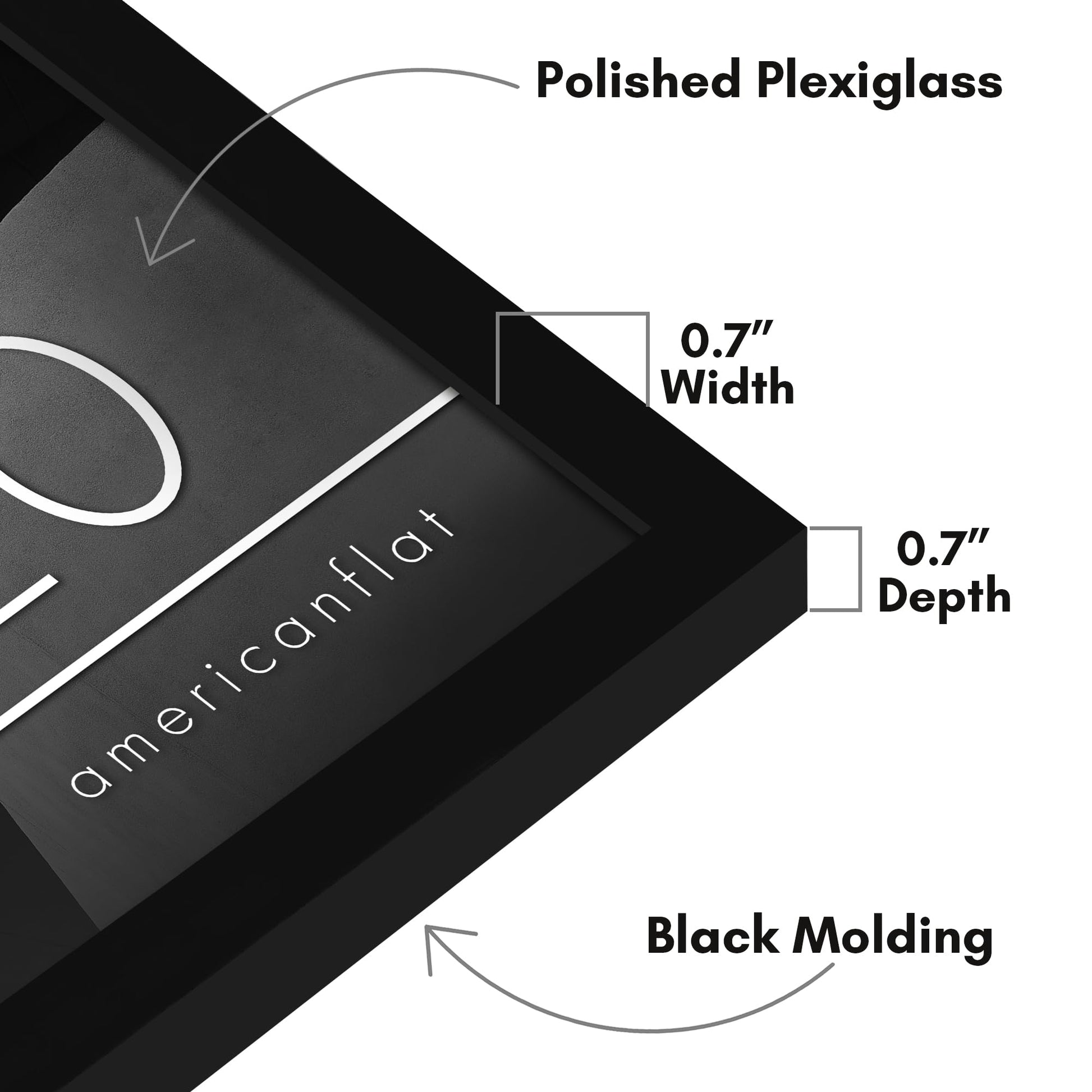 Details: Showcase your memories with the Americanflat 15x20 picture frame, designed to elevate every moment. Crafted from durable material (PVC) with a sleek, slim molding, this is more than a picture frame; it’s a game changer for your decor. The polished plexiglass front offers clarity while protecting your poster or artwork from dust and scratches. Versatility meets style with these black picture frames. Hang it vertically or horizontally using the included hanging hardware, and make it the perfect fit for any wall. Whether you're displaying a poster, artwork, or photo, our gallery-style frame is the ideal way to showcase your cherished memories anywhere in your home or office. No matter how you style it, the black finish adds a timeless touch, instantly elevating your space. Refreshing your display has never been easier. The easy-to-use turn points make swapping photos a breeze, so you can update your walls as often as you like. Plus, the sturdy backboard keeps everything securely in place, ensuring your memories always look their best. Why settle for boring walls when you can have a gallery at home? This photo frame is built to last, combining style and functionality to create keepsakes you’ll treasure forever. Order yours today and join thousands of satisfied customers who’ve transformed their spaces with Americanflat.