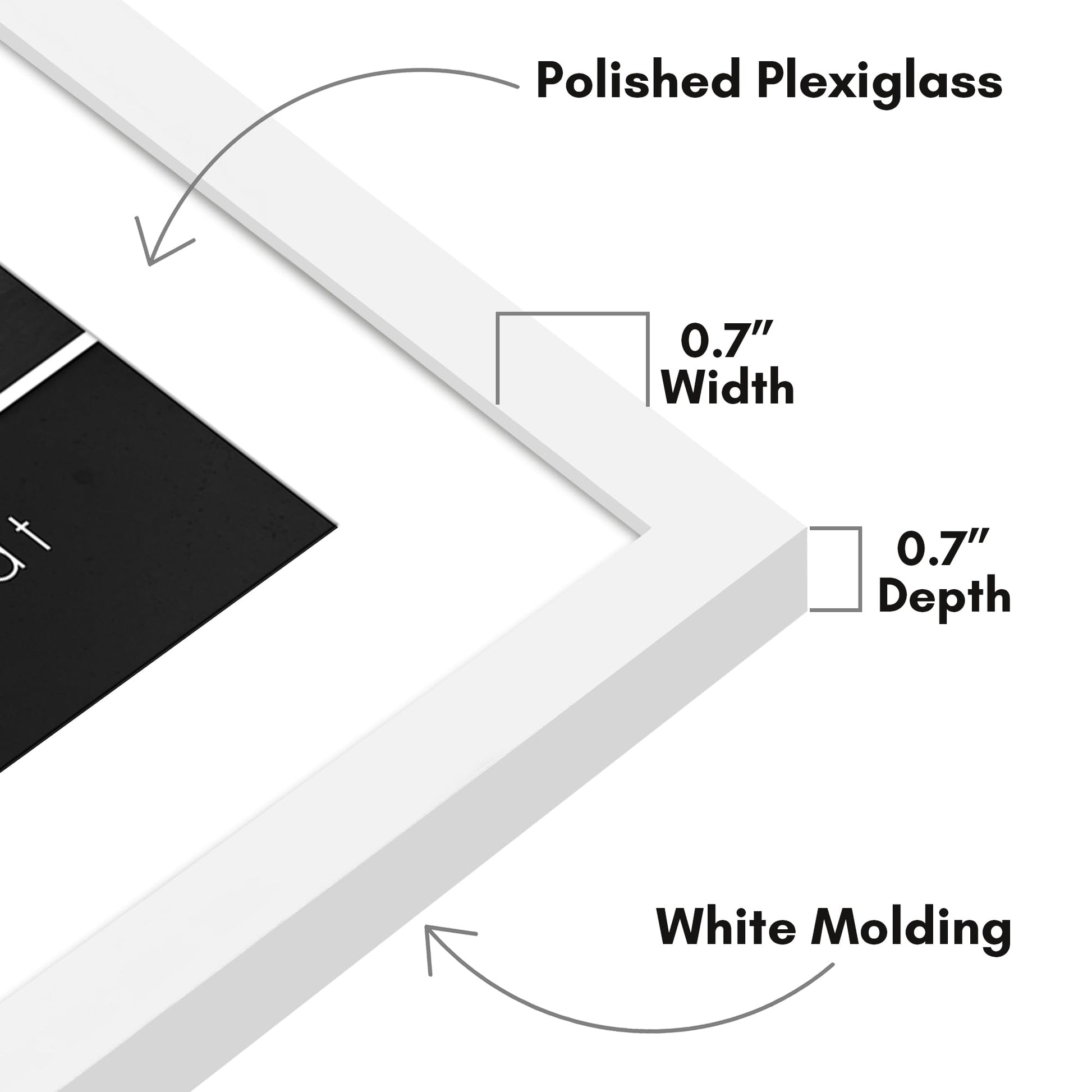 Details: Showcase your memories with the Americanflat 22x28 picture frame, designed to elevate every moment. Crafted from high quality and durable material (PVC) with a sleek, slim molding, this is more than a picture frame; it’s a game changer for your decor. The polished plexiglass front offers clarity while protecting your photos from dust and scratches. Versatility meets style with these white picture frames. Hang it vertically or horizontally using the included hanging hardware, and make it the perfect fit for any wall. Whether you're displaying a poster, artwork, or photo, this gallery-style frame is the ideal way to showcase your cherished memories anywhere in your home or office. Display your 22x28 photos without the mat, or use the included mat for a 18x24 display. No matter how you style it, the timeless white finish adds a modern touch, instantly elevating your space. Refreshing your display has never been easier. The easy-to-use turn points make swapping photos a breeze, so you can update your walls as often as you like. Plus, the sturdy backboard keeps everything securely in place, ensuring your memories always look their best. Why settle for boring walls when you can have a gallery at home? This photo frame is built to last, combining style and functionality to create keepsakes you’ll treasure forever. Order yours today and join thousands of satisfied customers who’ve transformed their spaces with Americanflat.