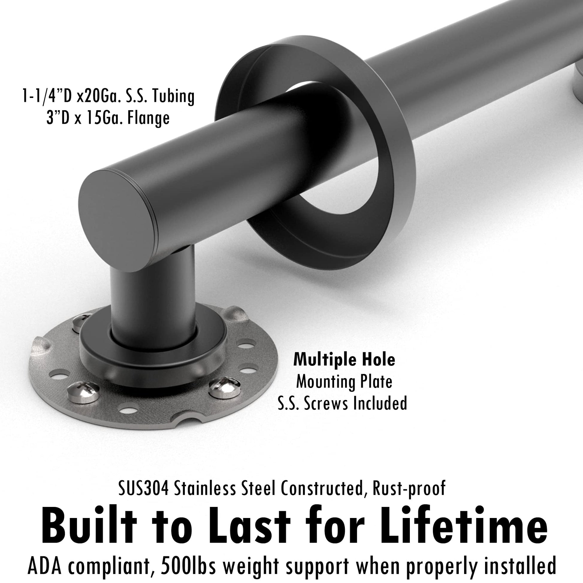 - 👍 High Quality - This shower grab bar is constructed of commercial grade SUS304 stainless steel. With 1 1/2" clearance and 1 1/4" tubing, it's ADA compliant, and the 500lbs loading capacity exceeds ADA standard (250lbs).