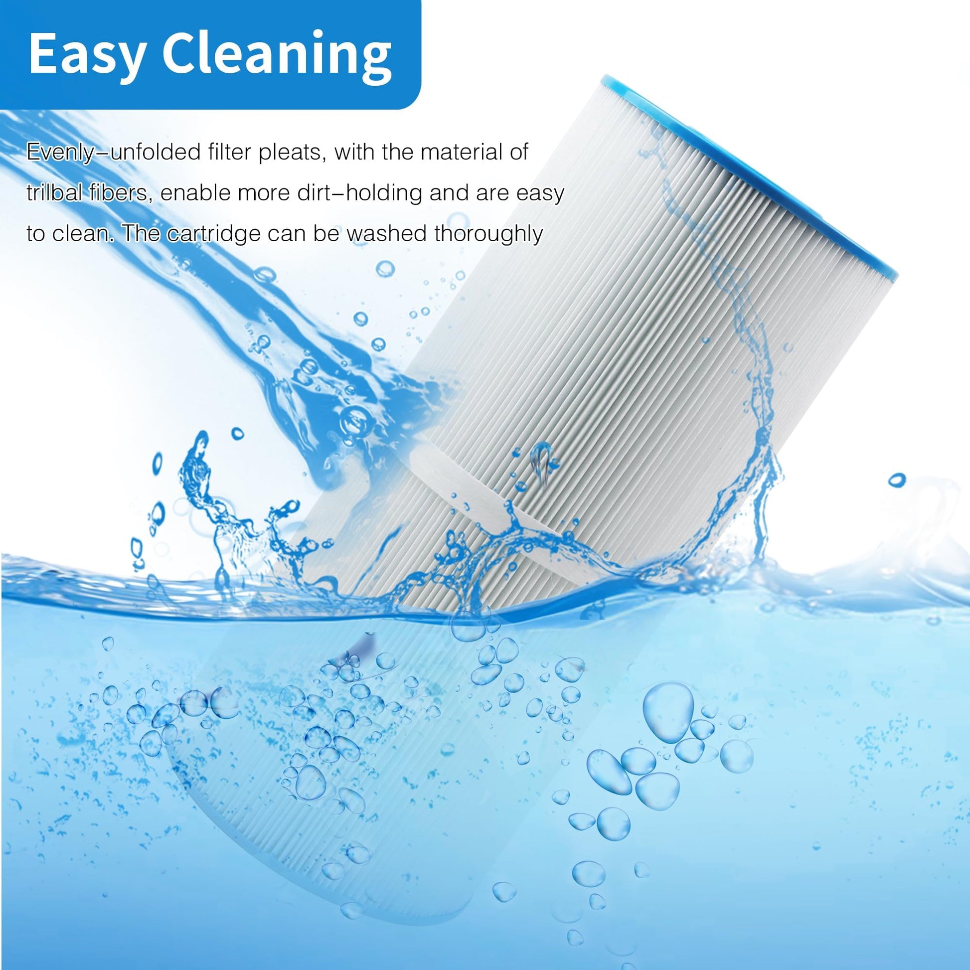 - EASY TO CLEAN】The Trilobal Fabric Structure filter material makes it easy to release impurities when cleaning the filter, the filter is like a new one after cleaning. It is recommended that you clean cartridges every 2 weeks to maximize your spa's performance.