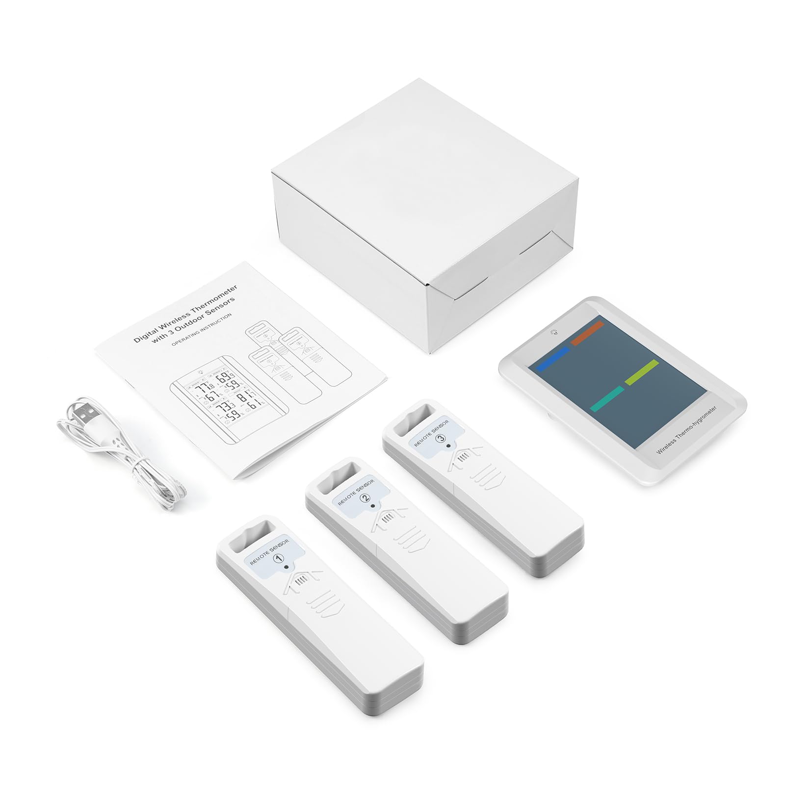 - 🌟WHAT YOU GET - You will receive a weather station, 3 sensors, a data cable, an instruction manual, and a 1-year warranty (batteries not included). This digital thermometer is perfect for placement in baby rooms, nurseries, basements, warehouses, and greenhouses. It also makes a great Christmas or birthday gift for friends and family!