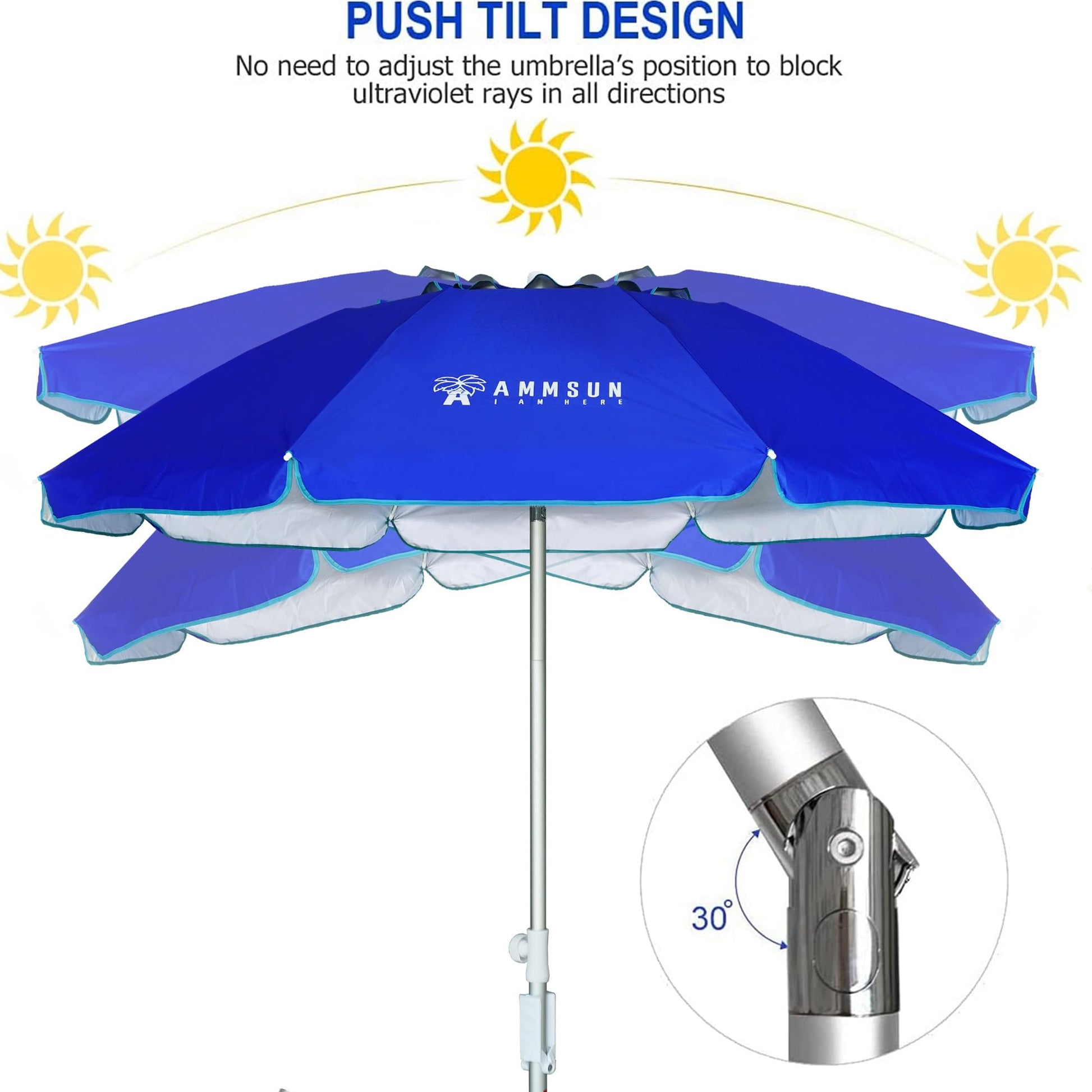 AMMSUN 6.5ft Folded Portable travel Beach Umbrella with Sand anchor Air-vent Tilt UPF 50+ Protection Fits in Suitcase Compact Foldable beach umbrella for Beach Garden Pool Blue