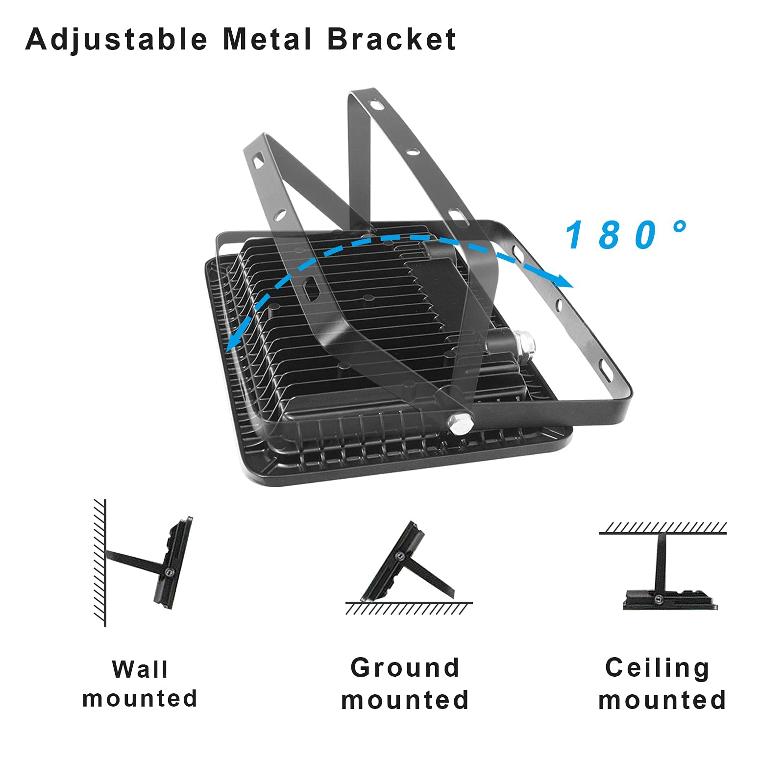 - 💡【Compact Design and Easy Installation】This LED flood light outdoor comes with over 120° beam angle, shadow-free, anti-glare and 3.60ft long wire and standard US plug. And this outside led work light is equipped with 180° adjustable metal bracket, easy & flexible to adjust different angle as your requirement, easily installed on the ceiling, walls, ground, and other locations!