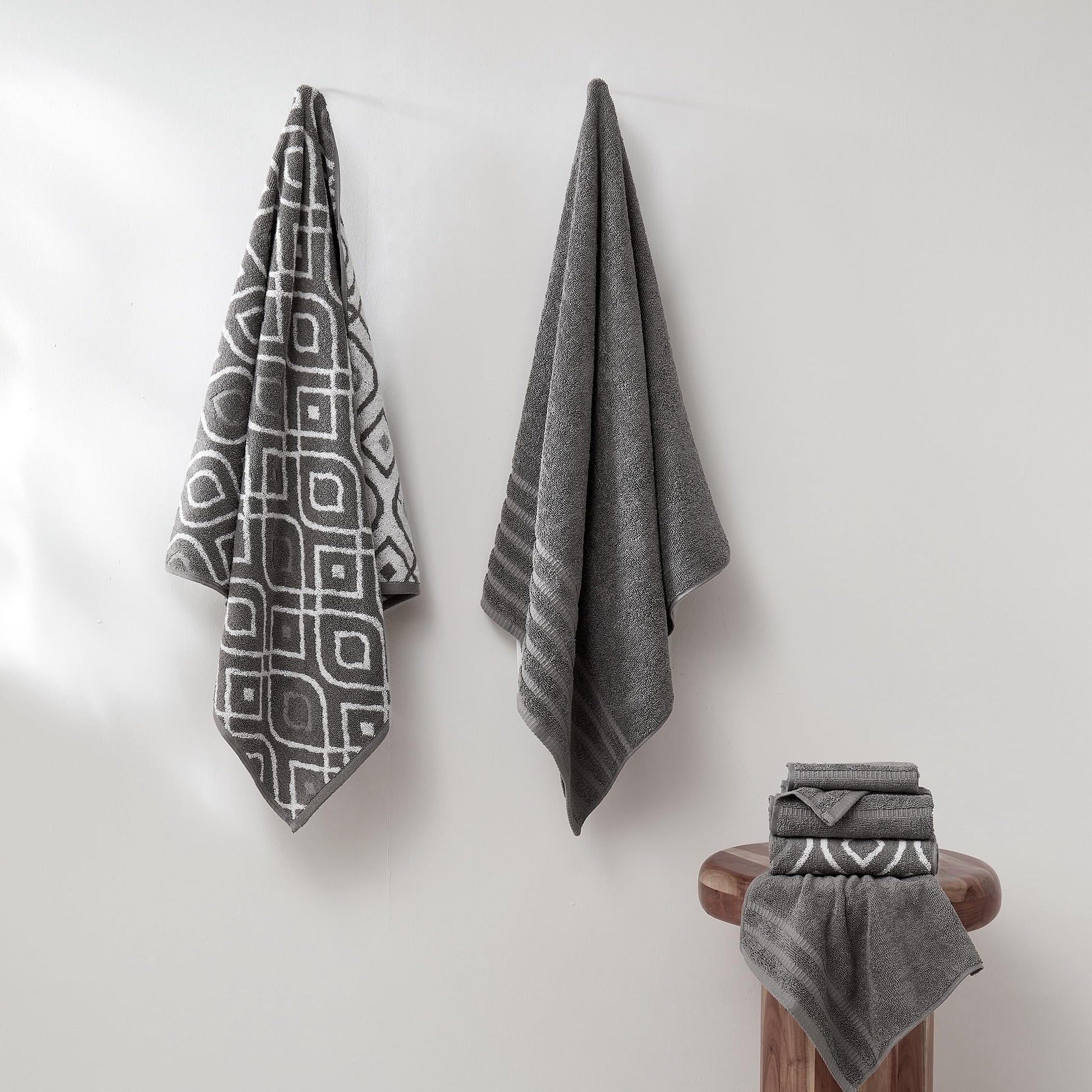 - SET INCLUDES: (2) Bath towels, (2) Hand towels, (2) Washcloths.