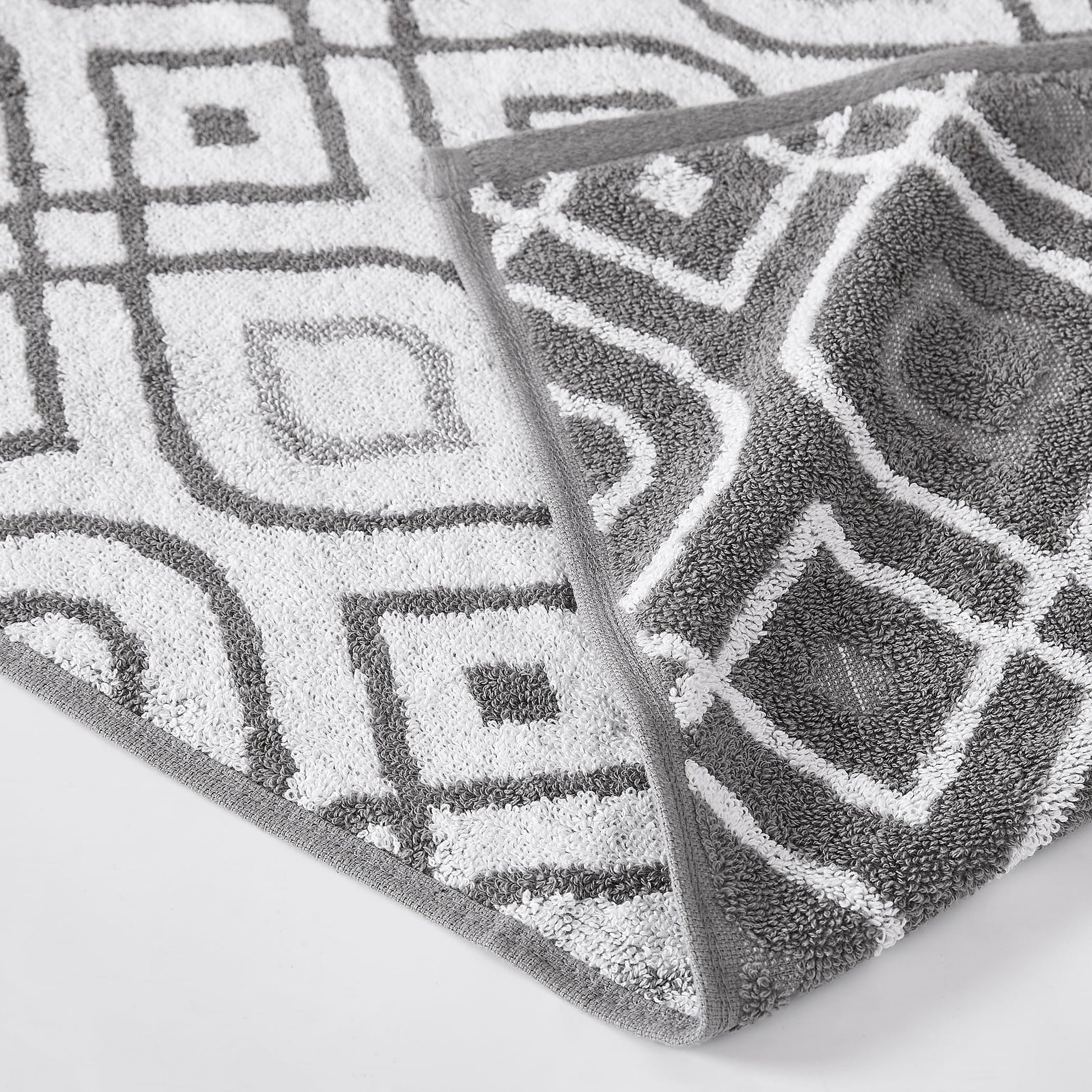 - FEATURES: Set includes one yarn dyed, Oxford stripe jacquard bath towel, hand towel and washcloth, and one solid bath towel, hand towel and washcloth. All material is ultra plush, soft and absorbent.