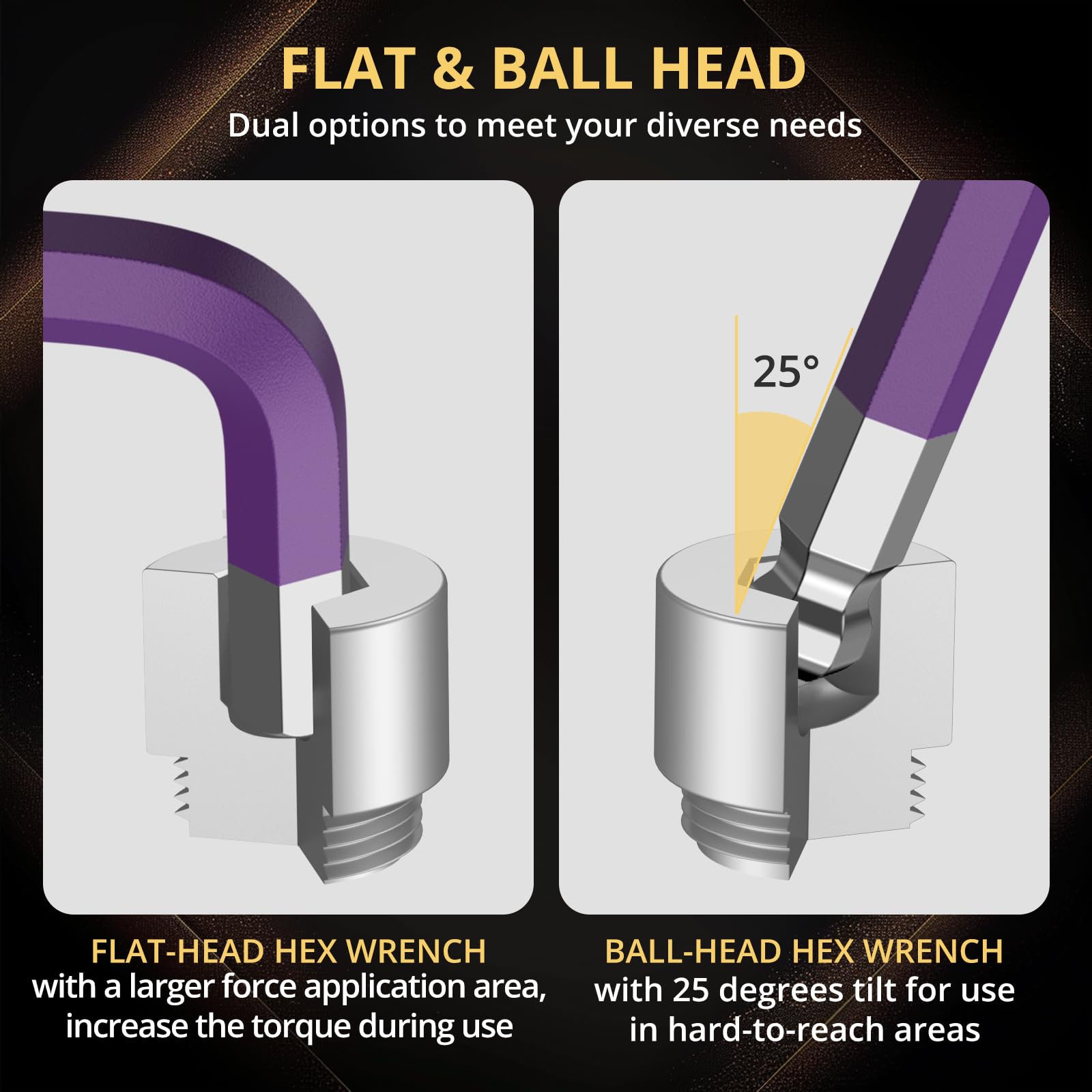 - 【Ball Head Design】The ball head design of the hex key set allows up to 25° entry for easy access in tight spaces. Surface oxidation treatment for corrosion resistance