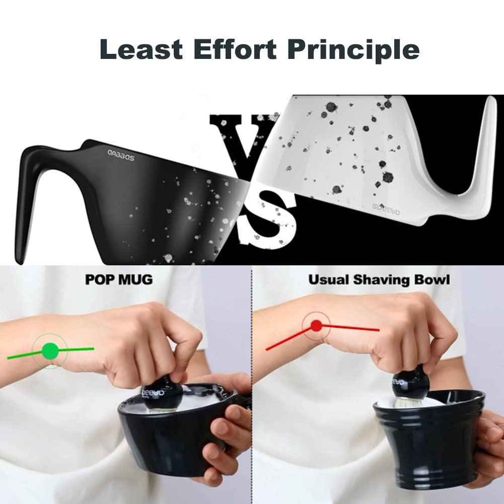 - POP MUG: Food-Grade A5 melamine material, safe, light and durable; Large diameter with handle,grasp so easily and labor-saving; not only lathering easily and quickly, but also helps you to break free from shaving holder, gather brush naturally.