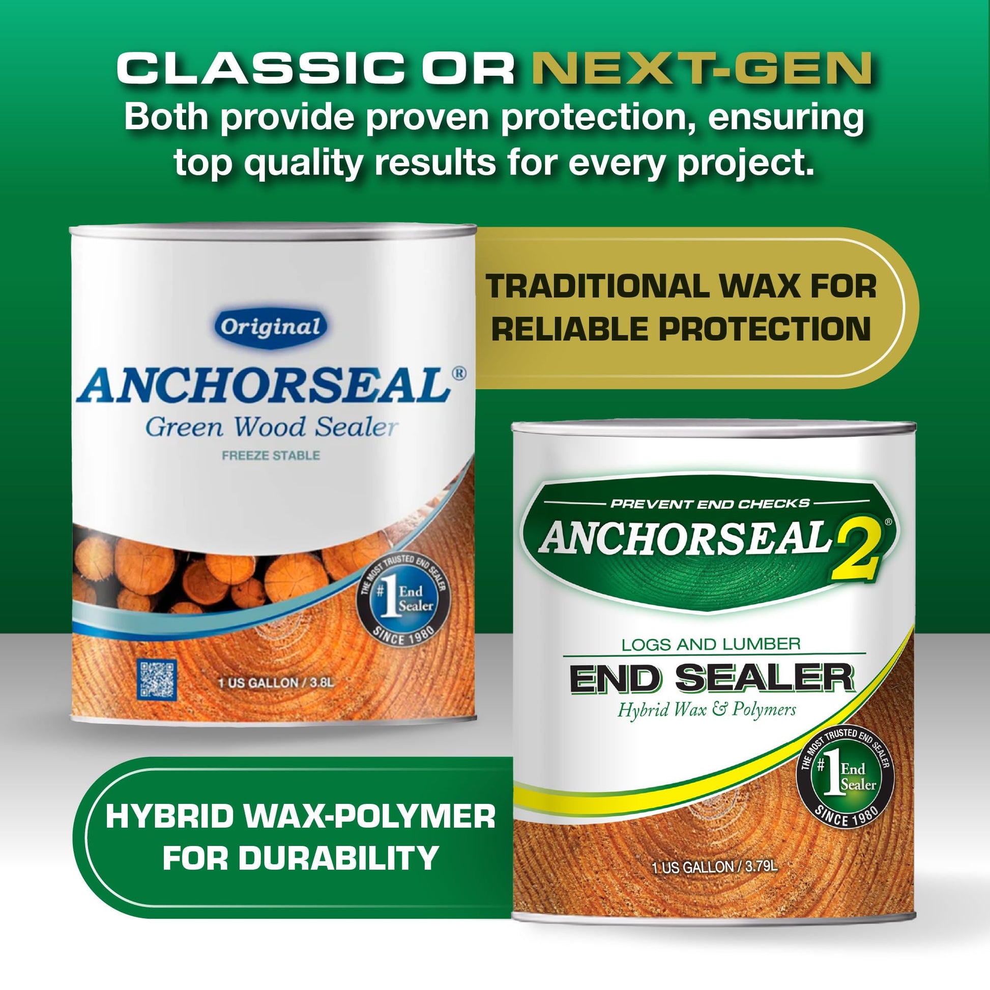 ANCHORSEAL 2 Hybrid Log & Lumber end grain sealer (1 Gallon) - Water-based wax & polymer prevents up to 90% of end checking (drying splits) on cut ends. Green wood sealer for turning blanks & bowls. … (1 Gallon)