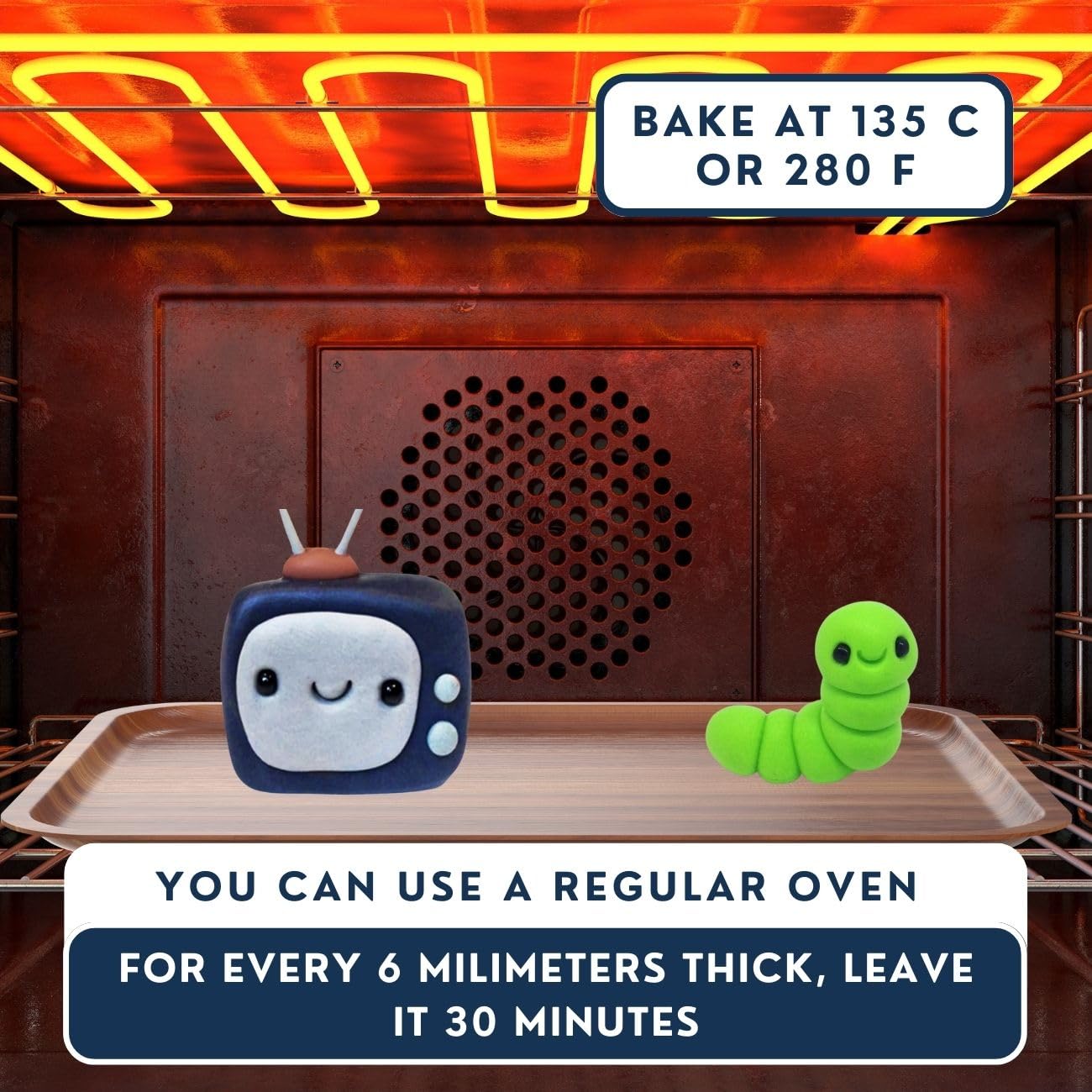 Details: What is Cosclay? Cosclay is a hybrid, plastic/rubber polymer clay that remains strong and flexible after curing. Unlike other polymer clays, Cosclay’s unique flexibility imparts a durable and resilient quality that is suitable for endless applications, such as stop-motion characters, posable figures, one of a kind (OOAK) sculptures and much more! Cosclay allows for the creation of very thin and delicate pieces without the fear of breakage after curing, especially during transit. What temperature is best to cure Cosclay to get the optimal properties of the cured clay? It is important to cure at 275°F (135°C) for at least 30 minutes per ¼” of material. If Cosclay is cured at too low a temperature, it will have a weak cure and will break when bent instead of flexing and holding its shape. Because Cosclay is temperature sensitive we do not recommend tabletop plastic dome style halogen convection ovens. Or small tabletop toaster ovens. We find that these types of ovens generate hotspots and uneven heating. While they may work for conventional polymer clays, they do not work well for Cosclay. The best type oven that provides the most even heating is a conventional home oven, either electric or gas. Can I bake my Cosclay, add new Cosclay and bake it again? Will the new clay stick to the cure clay? The answer is yes! You can bake Cosclay repeatedly and new clay will stick to cured clay. How many times can I bake my piece without losing the flexible aspect of Cosclay? Cosclay is formulated to remain flexible after repeated baking. We have baked pieces dozens of times without any noticeable loss of flexibility. Can Cosclay be painted? Yes. Cosclay can be painted with craft acrylics, pastels, Genesis polymer paints and some urethanes. (Test on a small, discreet area for compatibility.) Does Cosclay contain any hazardous components? No. Cosclay is made of 100% nontoxic ingredients. It has been tested by a certified toxicologist and conforms to ASTM D-4236.